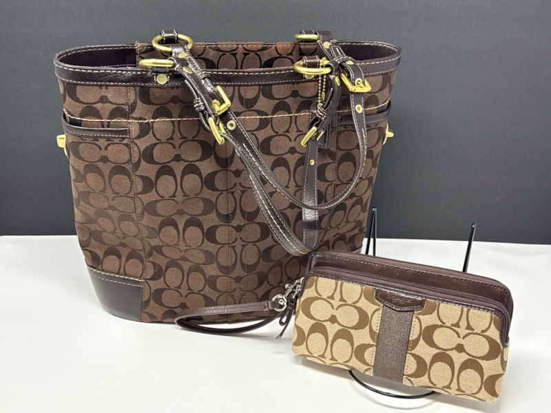 Lot # 80 - COACH Chocolate Brown Handbag & Wristlet