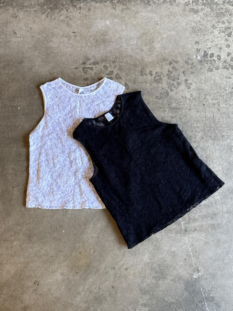 DKNY Black & White Stretchy Lace Tees- Sz M