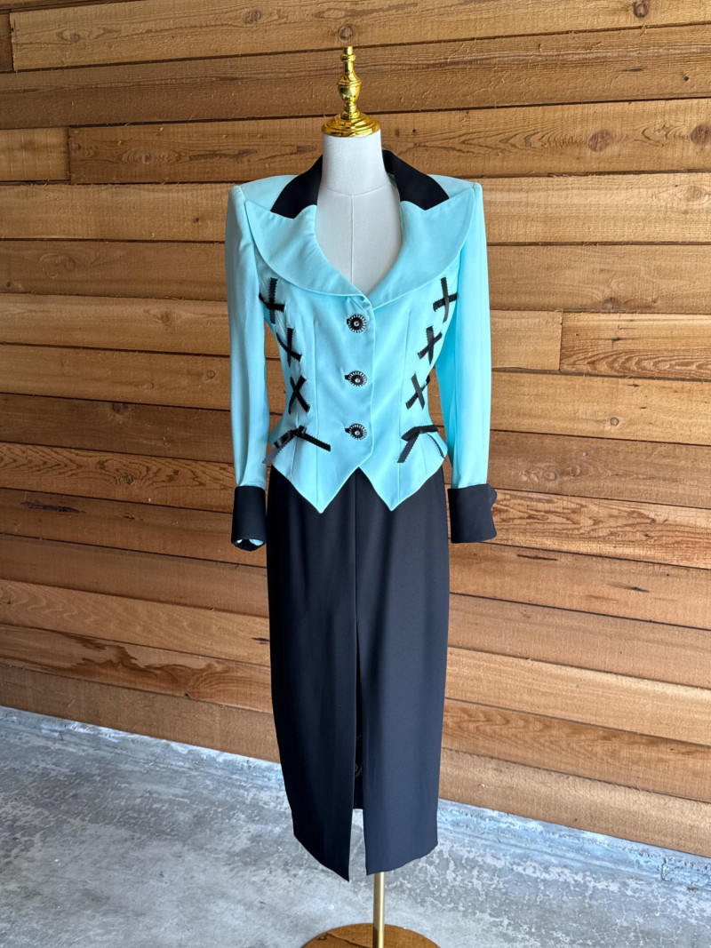 CRISCOINE Vintage Black & Aqua 2pc Skirt Suit- Sz XS