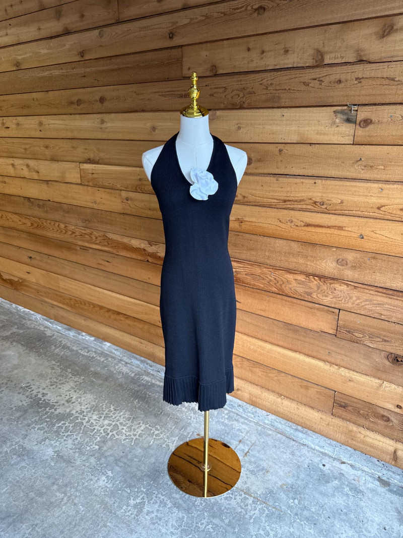ST JOHN Black Pleated Knit Halter Dress *NWT $795- Sz 2