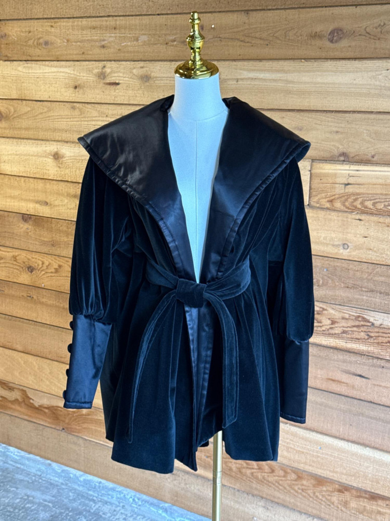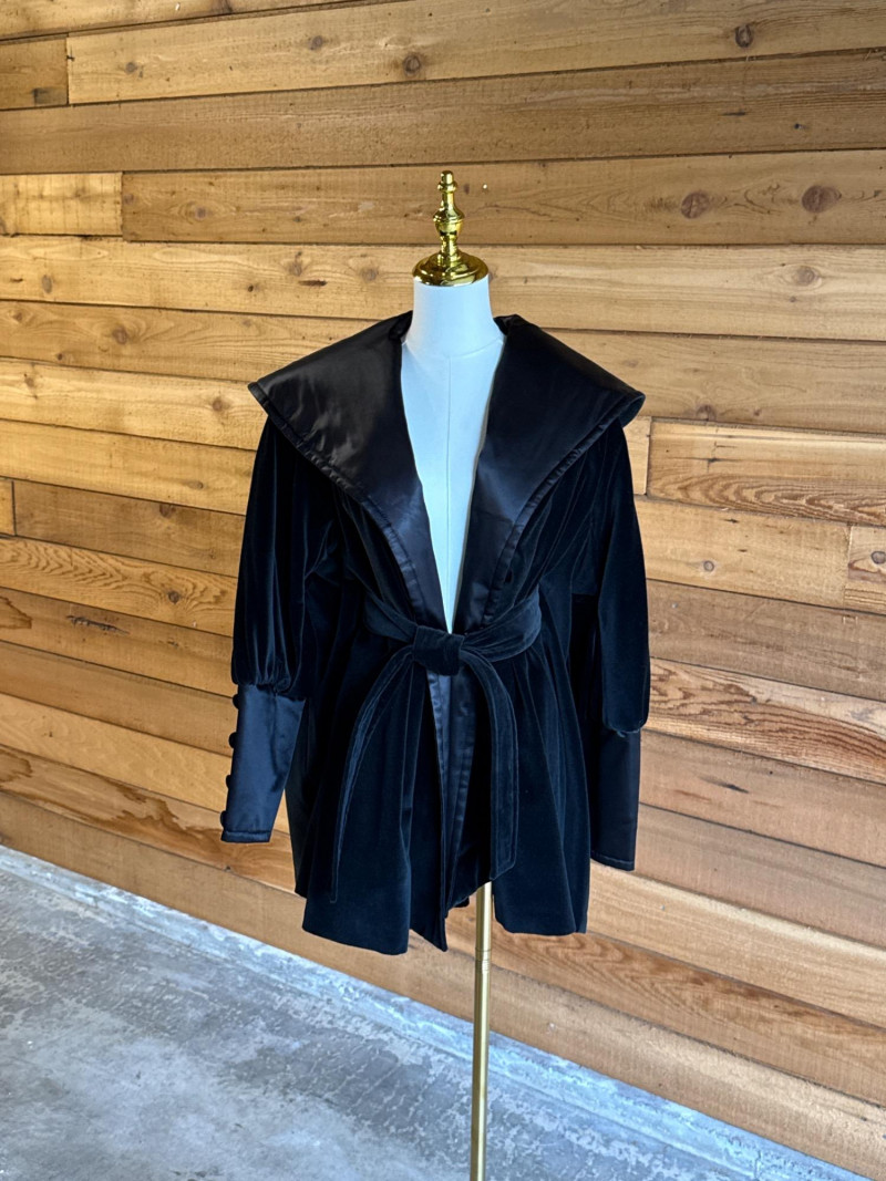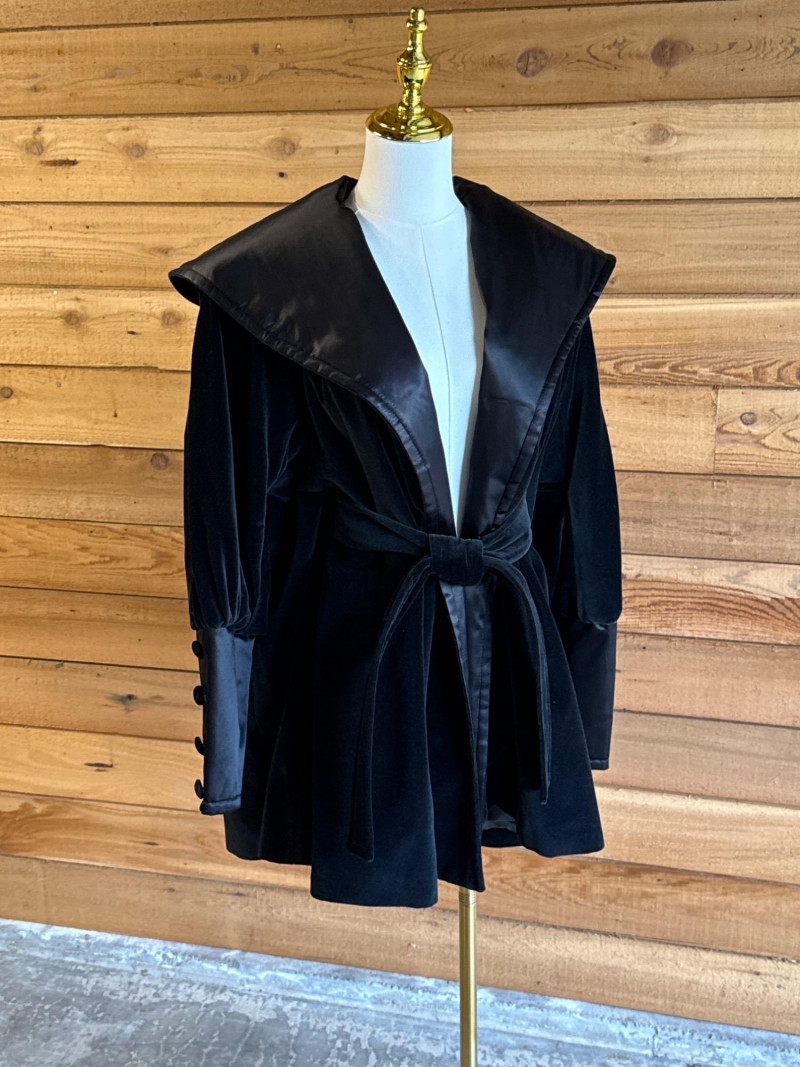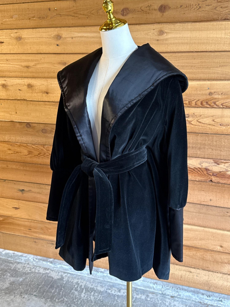 STAVROS New York Fancy Evening Coat- Sz XS Unique belt (feeds through the inside). Leaves the coat to hang almost like a cape. Heavy!