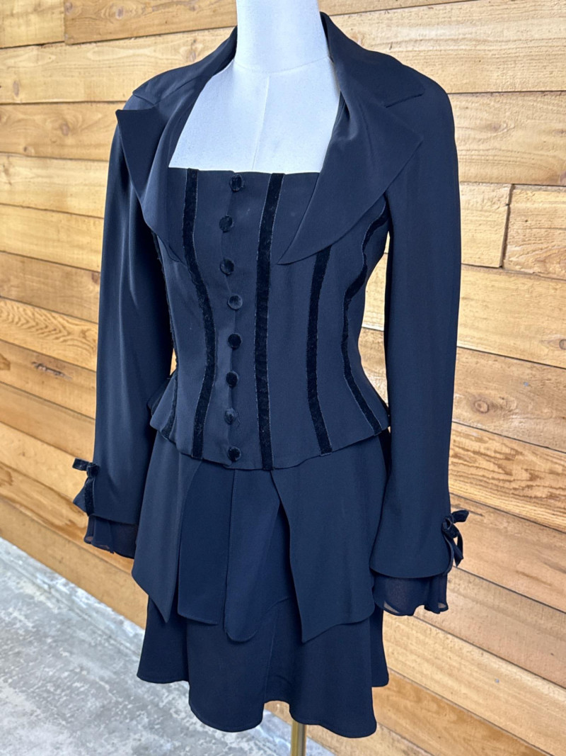Lot # 43 - CACHE Black Corset-Style Jacket*NWT $340 & Skirt- Sz 4
