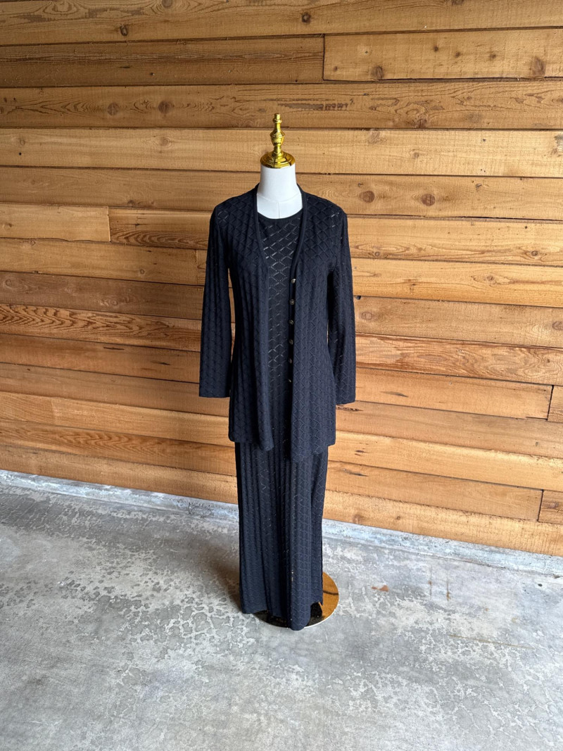 ST JOHN Black Knit Coverup Maxi Dress & Cardigan- Sz 4 *unlined