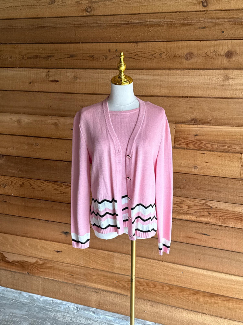 ST JOHN Pink, Black & White Sweater Set- Sz S