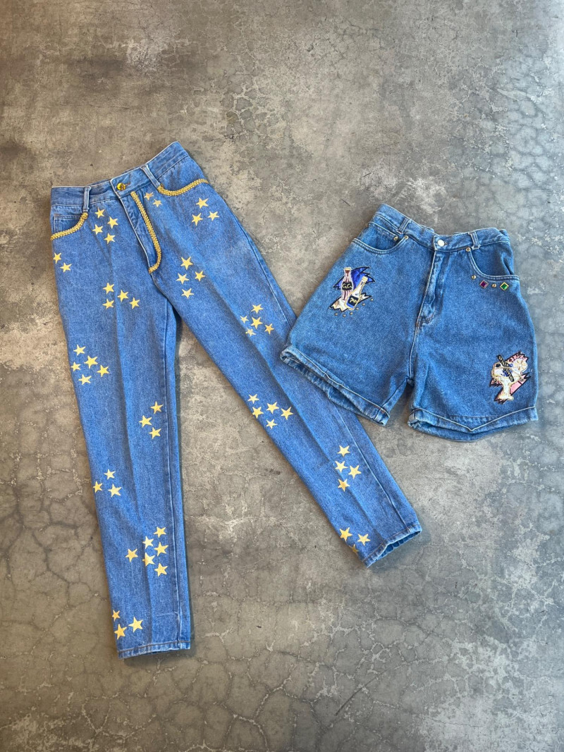 Vintage Painted Denim Jeans (Sz 6) & Shorts (Sz 7/8)