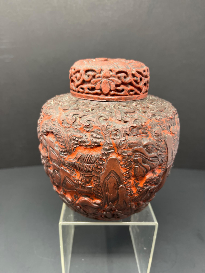 Lot # 57 - Cinnabar Ginger Jar with Porcelain Base