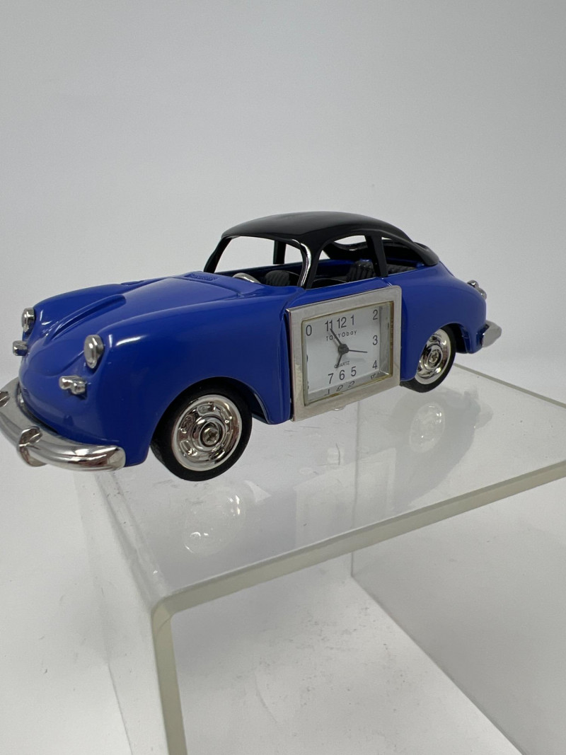 TokyoBay Watches is a brand specializing in stylish timepieces and accessories. Featured is a TokyoBay Collector Car Clock, a miniature blue car with a built-in clock. This unique piece combines automotive design with functional timekeeping, making it a great collectible. Clock hands can be adjusted; however, it appears the battery needs to be replaced.