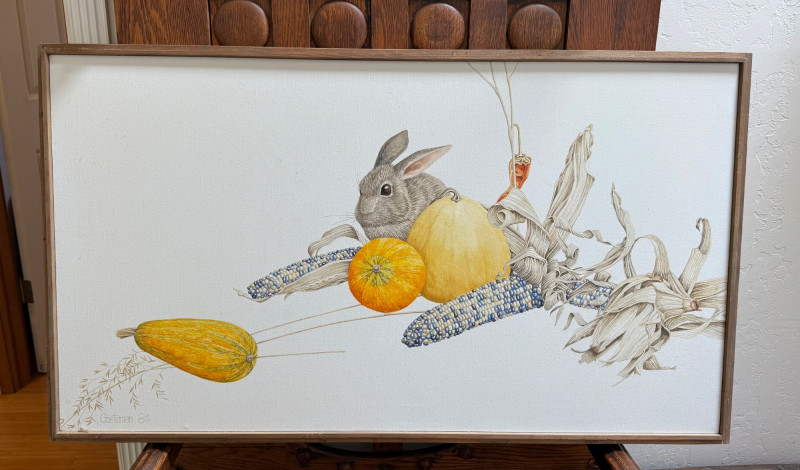 Lot # 156 - Anne Goetzman Bunny and Gourds Painting