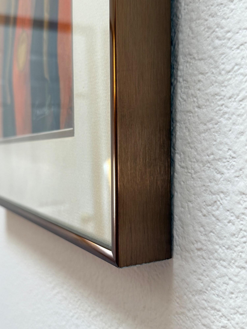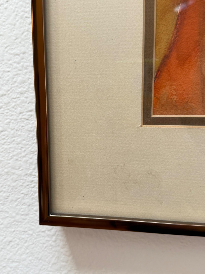 Excellent vintage condition. Frame and mat are clean and intact; artwork shows no signs of fading or damage.