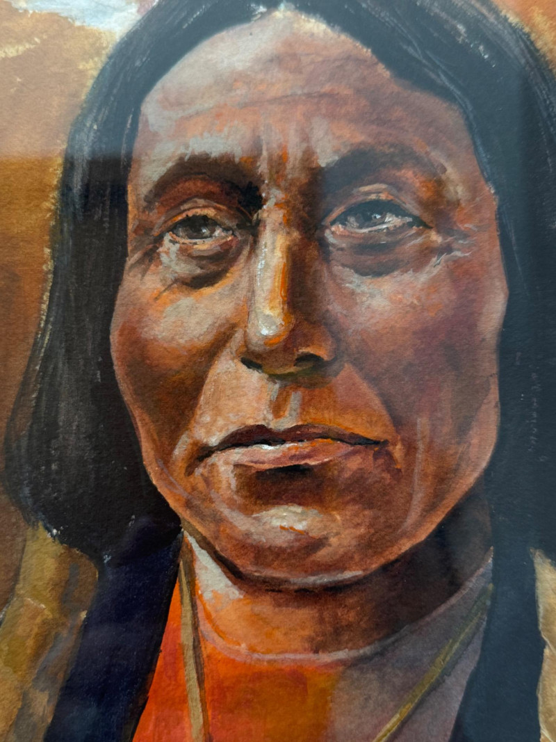 Robert E. Eversole Original Watercolor – Native American Portrait, 1980