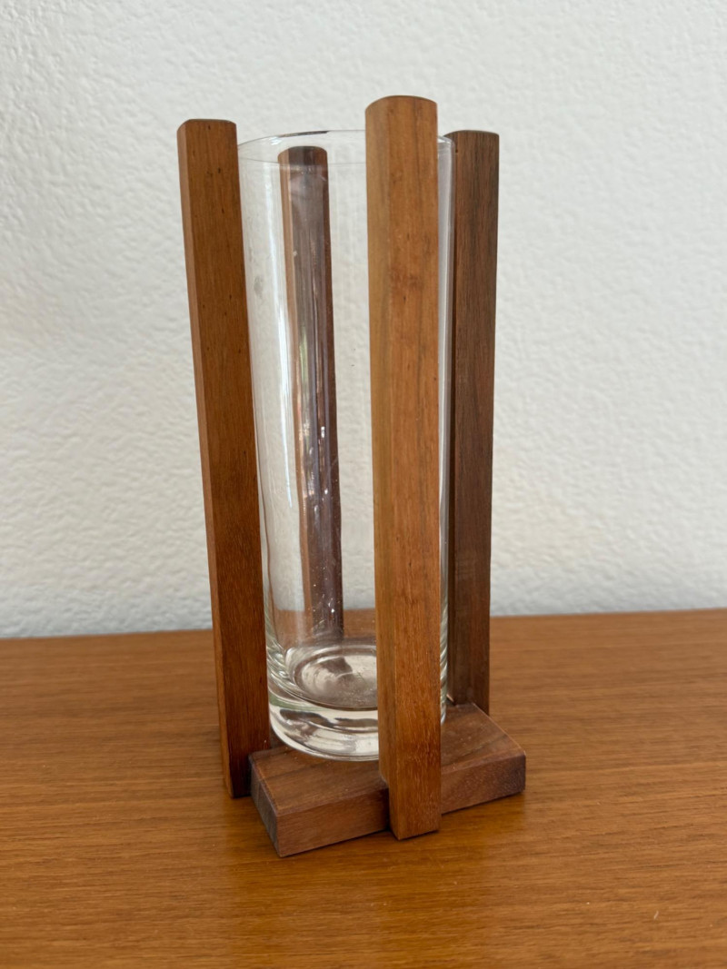 Mid-Century Rothschild Walnut & Glass Vase – 7.5” Tall, USA