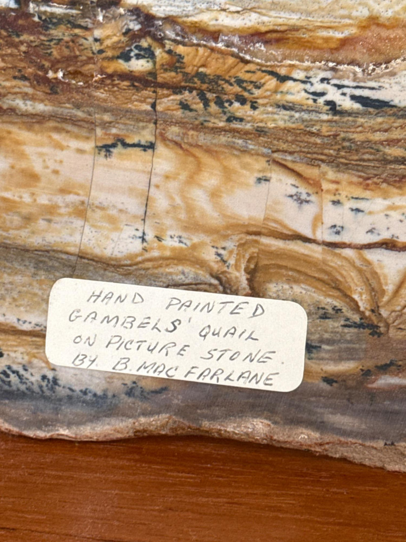 Lot # 54 - Hand-Painted Gambel’s Quail on Picture Stone by B. MacFarlane