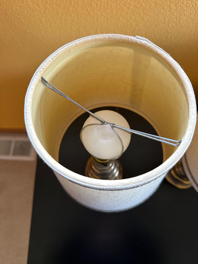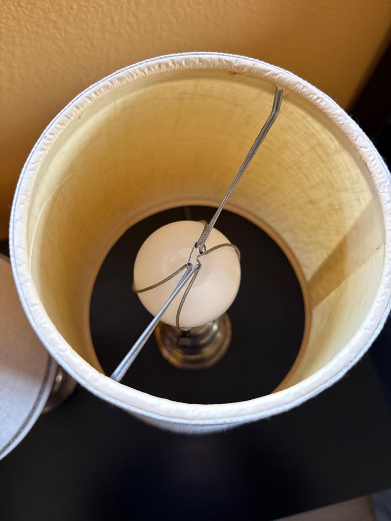 Pair of Mid-Century Tiered Metal Table Lamps w/ Linen Shades – 16.5”