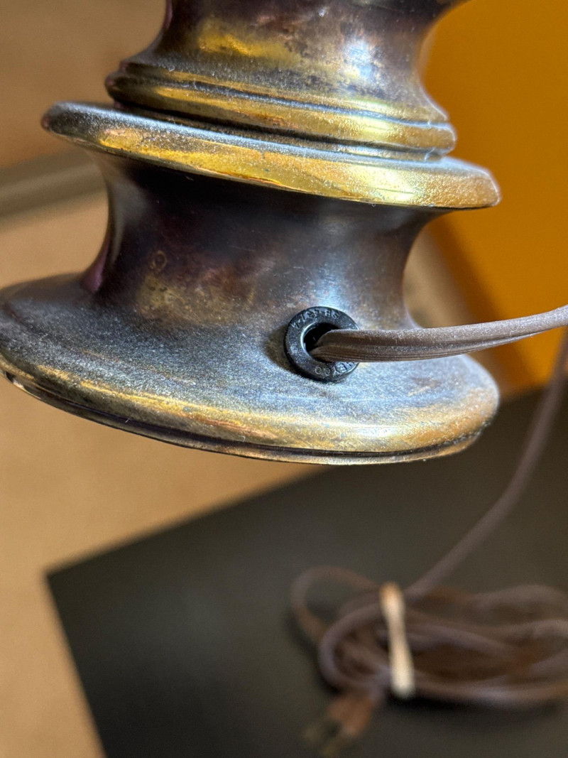 Lot # 59 - Pair of Mid-Century Tiered Metal Table Lamps w/ Linen Shades – 16.5”