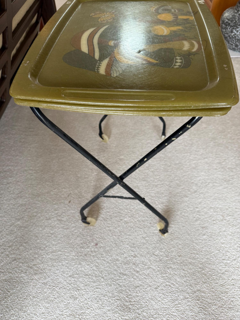Lot # 92 - Set of 4 Vintage Fiberglass Mushroom TV Trays w/ Stand – 1970s Retro