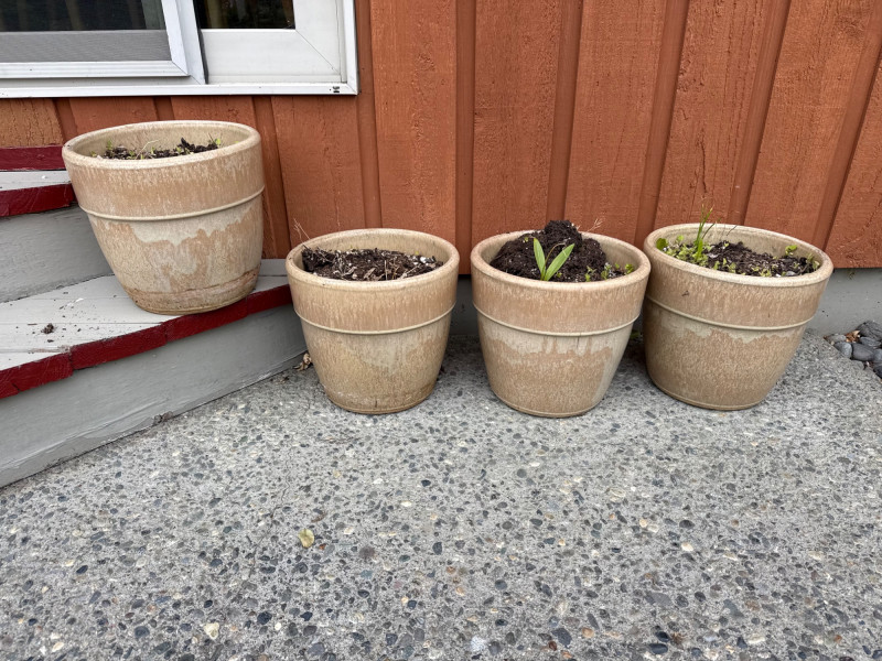 Set of 4 Matching Glazed Garden Planters - 10.5"W x 10"H This set includes four matching glazed planters, suitable for both indoor and outdoor use. Each planter measures approximately 10.5 inches in width and stands 10 inches tall, providing ample space for your favorite plants. Create a stylish and unified look with this versatile set.