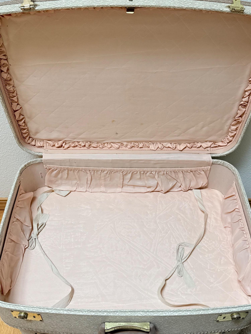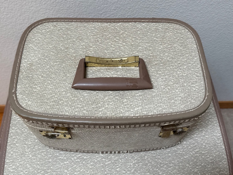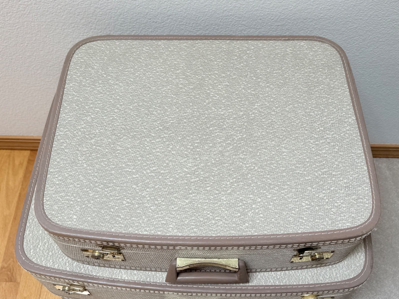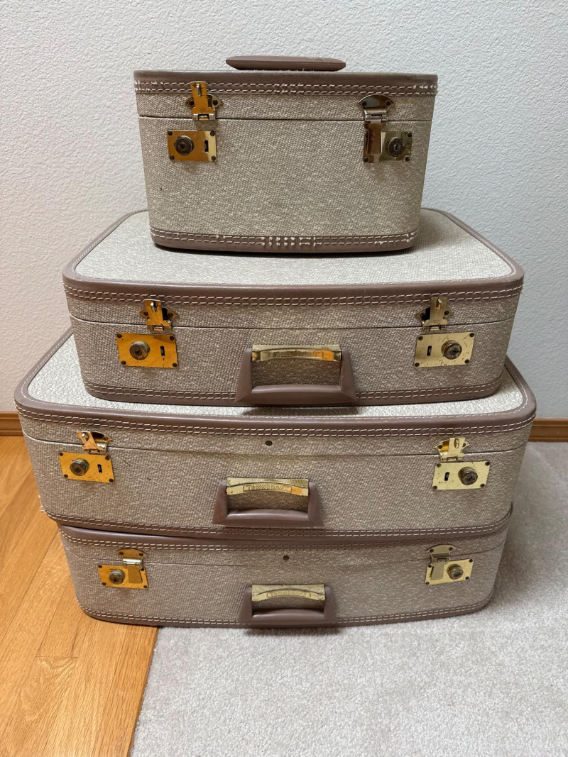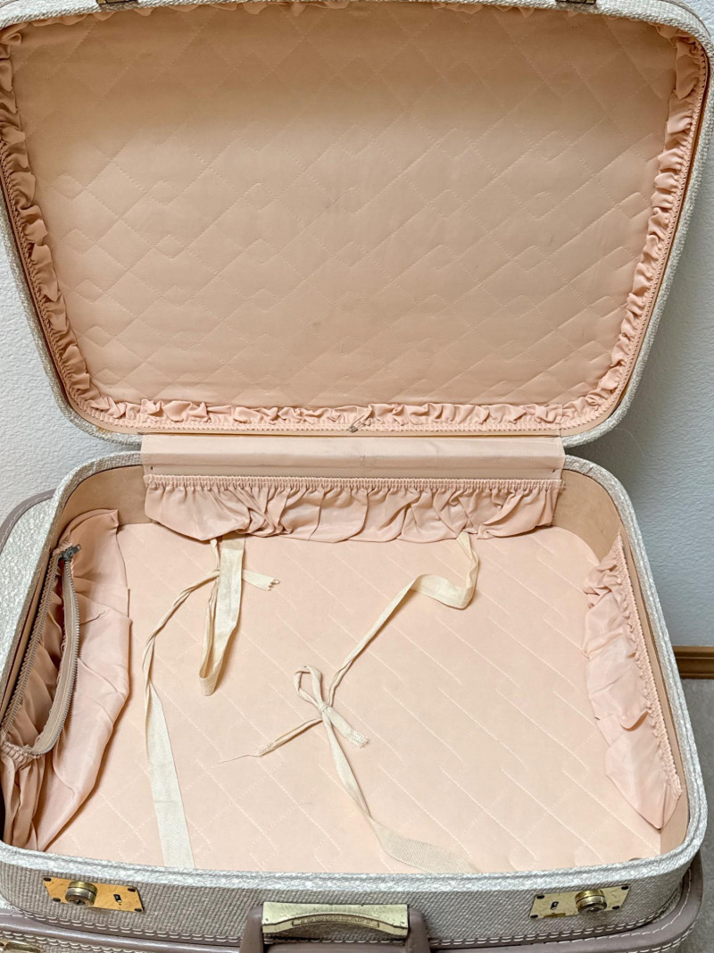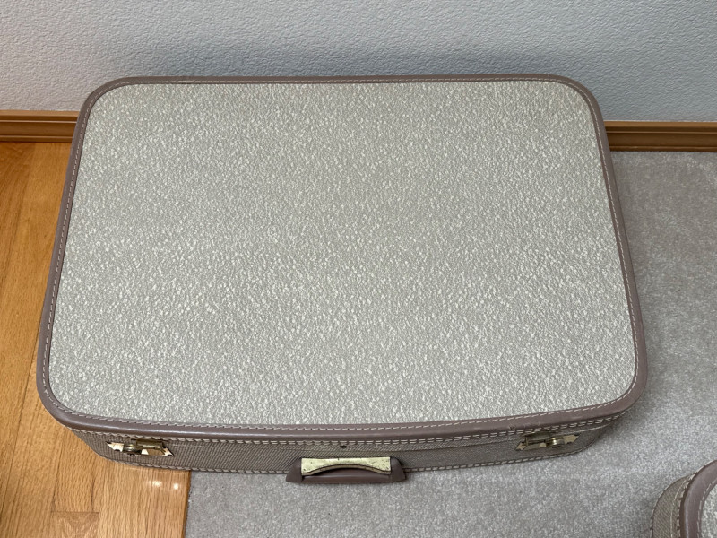 Vintage Towncraft Suitcase Nesting Set (4) - Retro Decor & Storage This charming set includes four matching vintage suitcases from Towncraft. Featuring a classic design with a textured exterior and interior lining, these suitcases evoke a nostalgic travel era. Sizes vary, offering versatility for different needs.