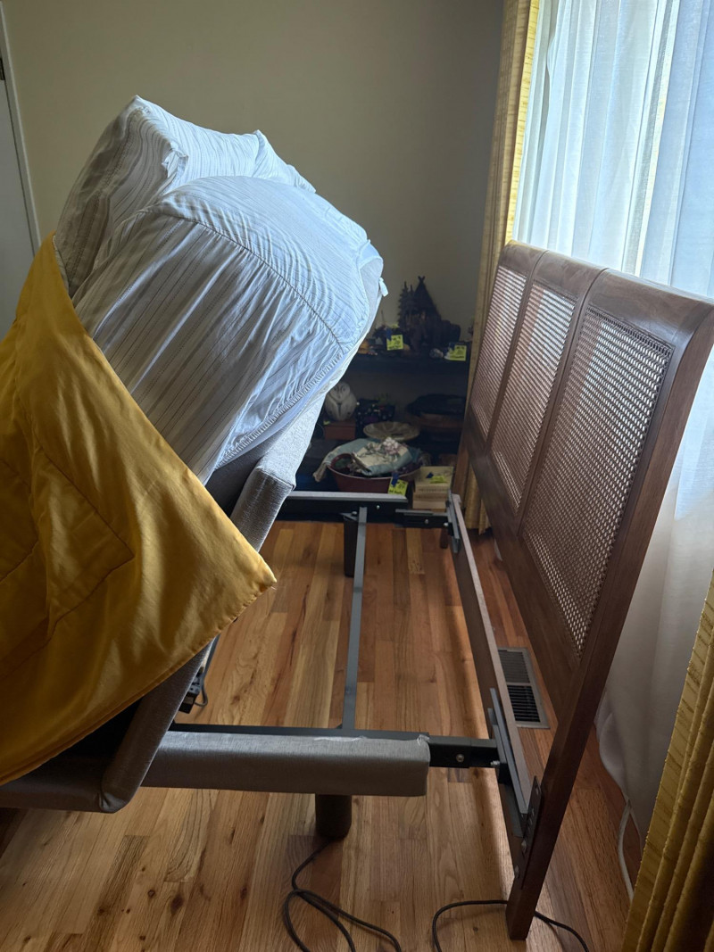 Experience ultimate comfort and support with this Tempur-Pedic adjustable bed featuring the Rhapsody Luxe mattress and Ergo Plus adjustable base. This premium sleep system includes a sturdy rattan headboard, lending a natural and elegant touch to your bedroom decor. The adjustable base allows for customizable head and foot positioning, controlled with the included Tempur-Pedic remote, designed for smooth and effortless adjustments. Perfect for reading, lounging, or achieving the ideal sleeping posture. Key Features: Mattress: Tempur-Pedic Rhapsody Luxe (Contour Collection) Base: Tempur-Ergo Plus adjustable base with head and foot control Headboard: Rattan cane design in solid wood frame Remote Control: Effortless adjustment for personalized comfort Dimensions: 58” W x 82” L x 44.5” H