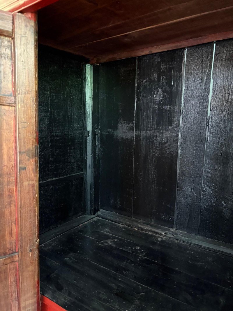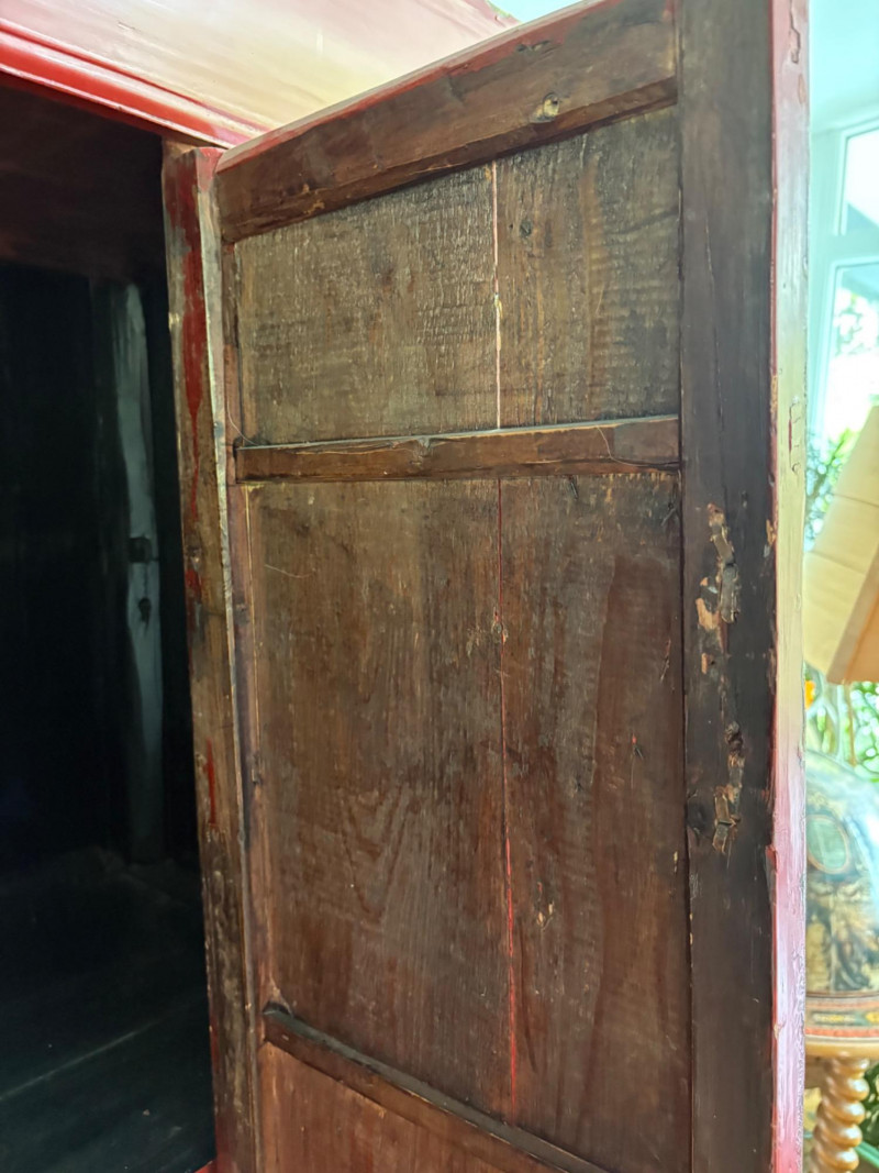 Lot # 1 - Large Red Antique Chinese Butterfly Cabinet