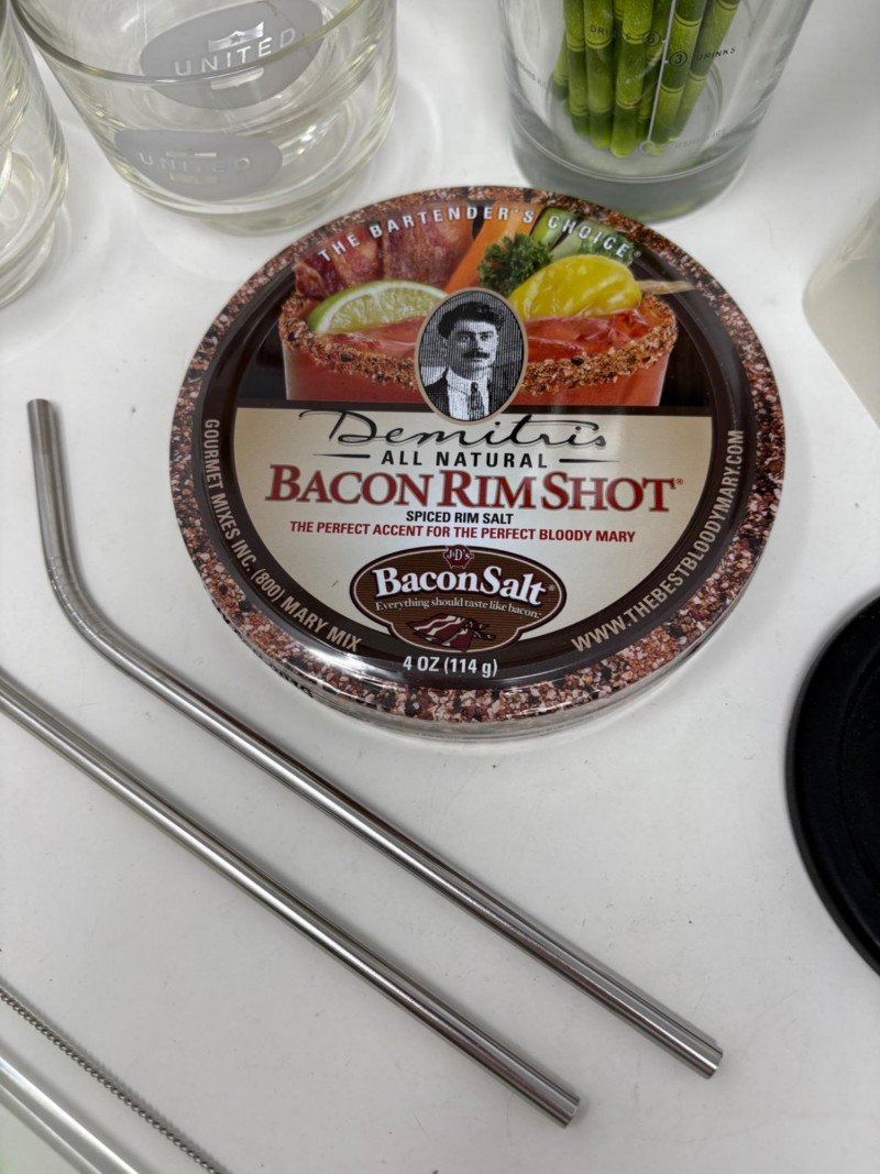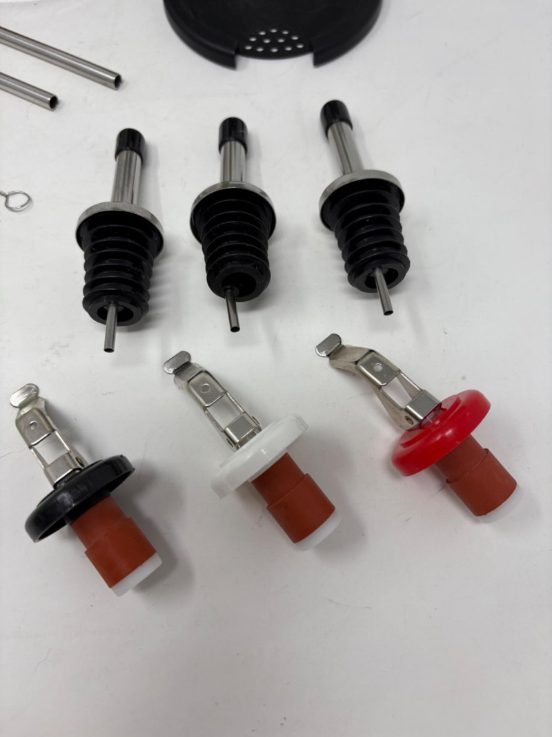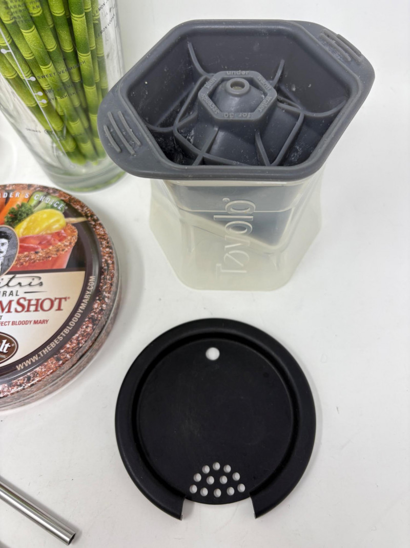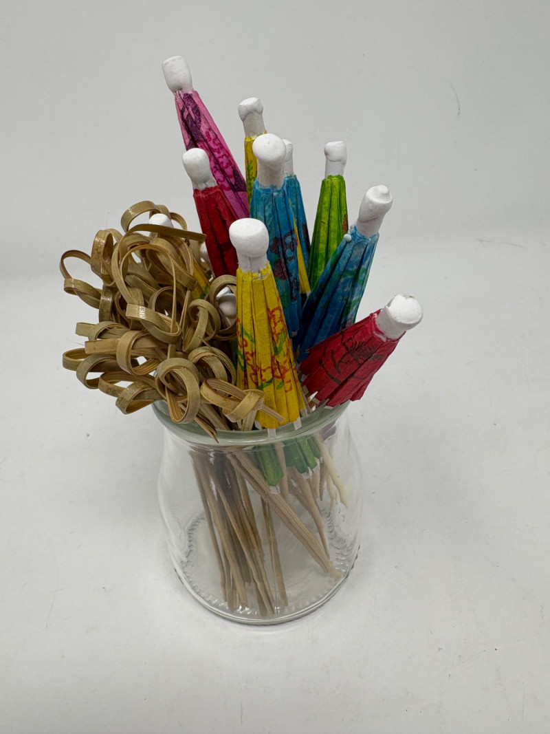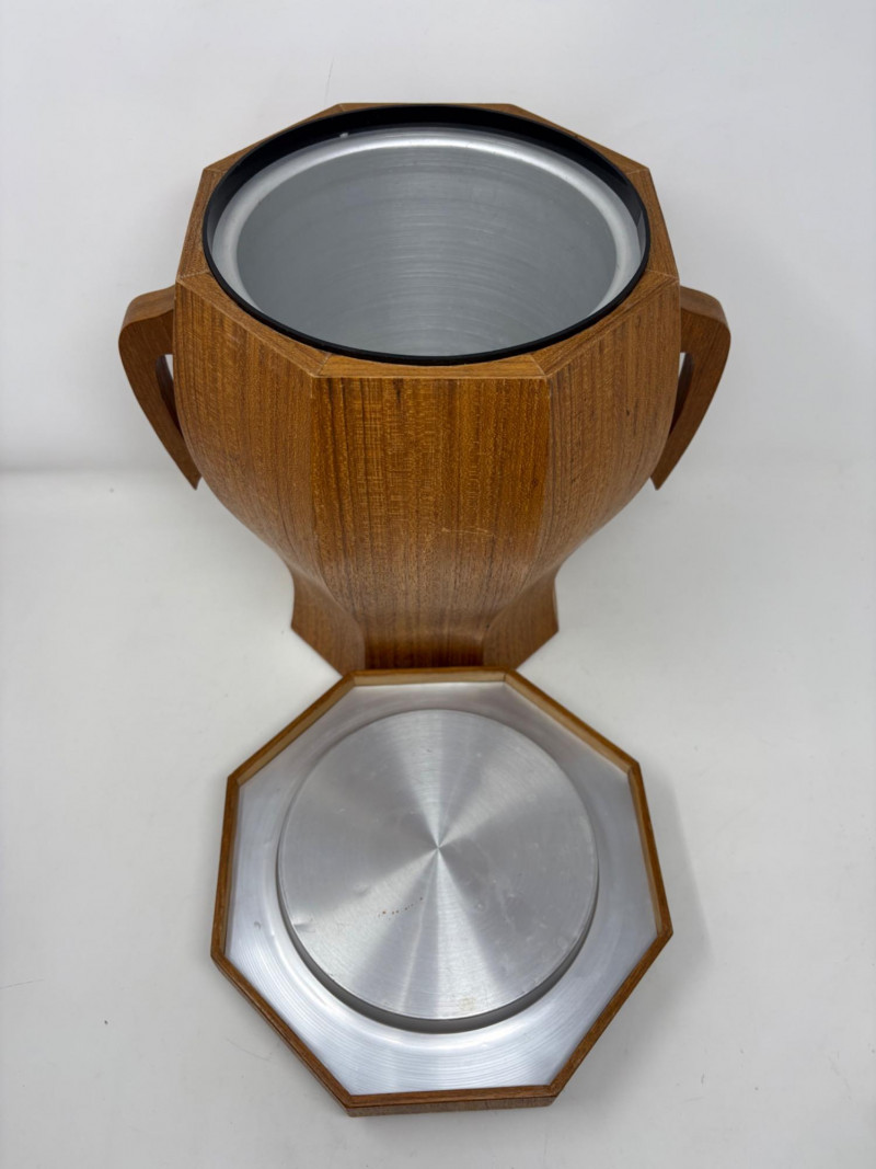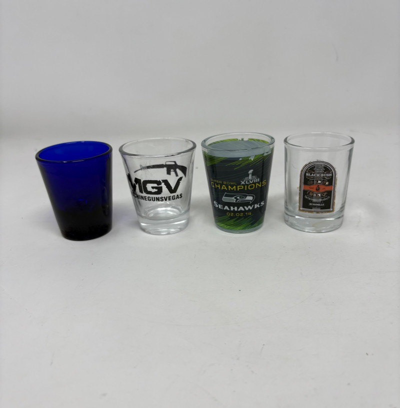 Large variety of barware for your every need. Lot includes: 4 clear margarita glasses 4 green and clear martini glasses 8 shot glasses MCM wooden ice bucket - measures approximately 12" H. Assorted bar accoutrements such as pour attachments, straws, etc. as pictured. BONUS - something for "highballs" not pictured.