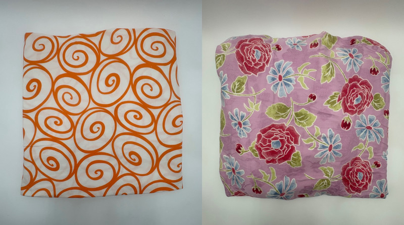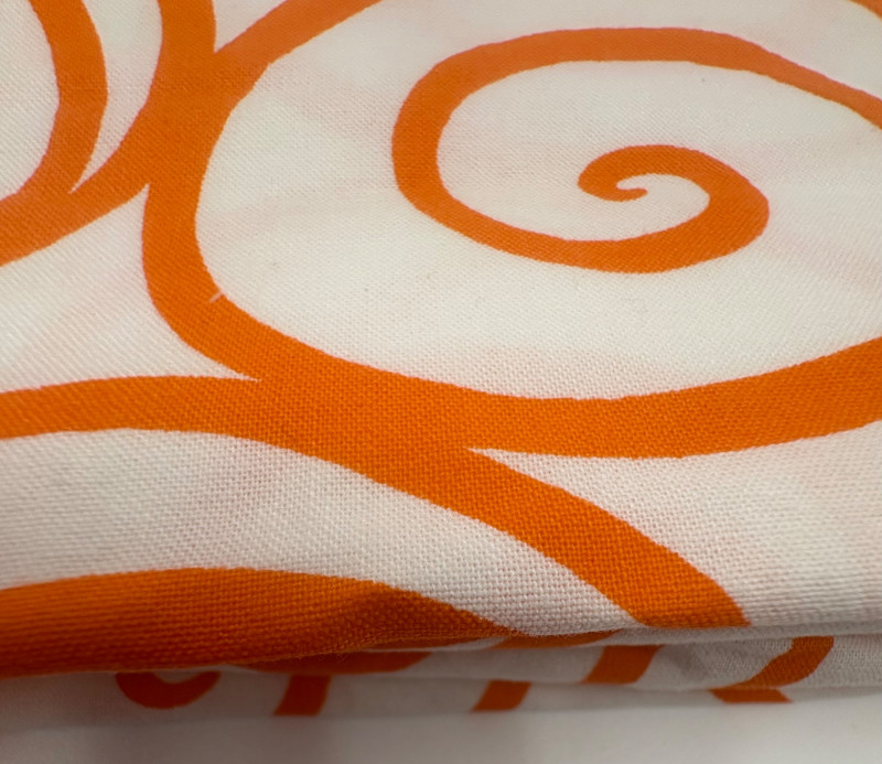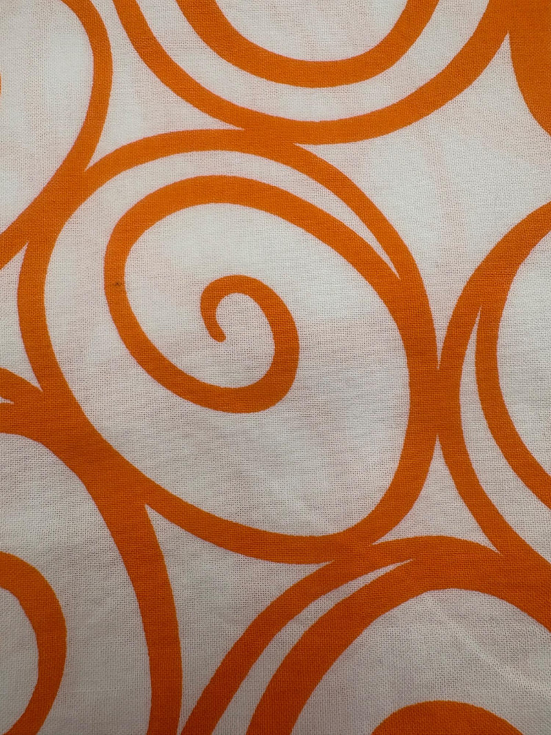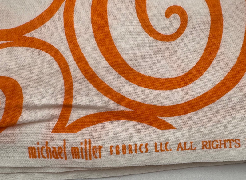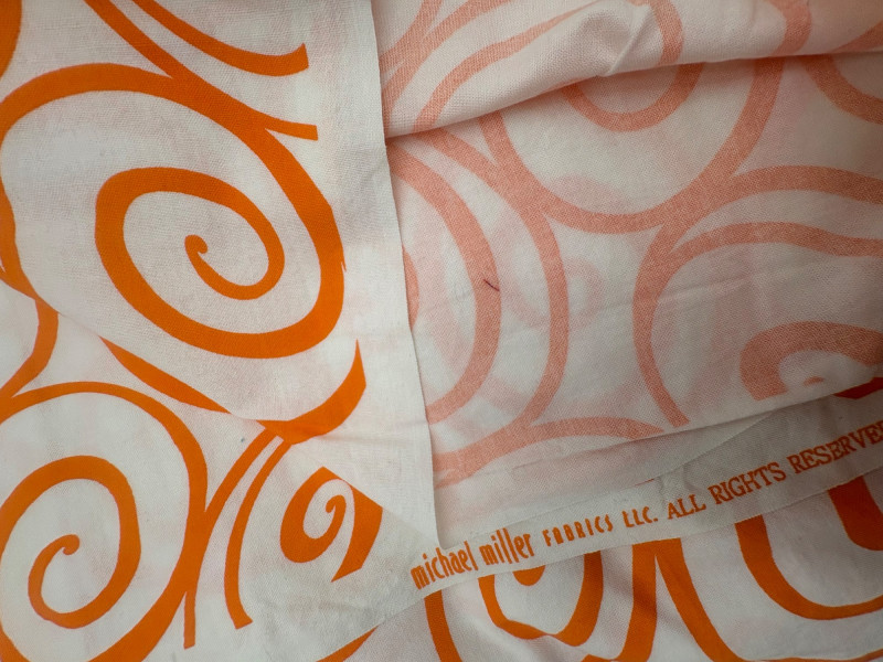 Two fabulous fabrics from quality makers. - Baby Lulu clothing was always made with amazing fabrics. This floral print on brocade was used for one of their spring collections; client purchased it direct from the mill that wove the company's textiles & used it for little girl's dresses. Super soft hand, presses beautifully, and falls with gentle lines. 5+ yards at 54" wide with 21.5" repeat. Pre-washed & shrunk. - 100% cotton "Iron Work" pattern from Michael Miller in orange on white. Great for quilting or crisp button-front shirts. 3+ yards at 42" wide. Pre-washed & shrunk.