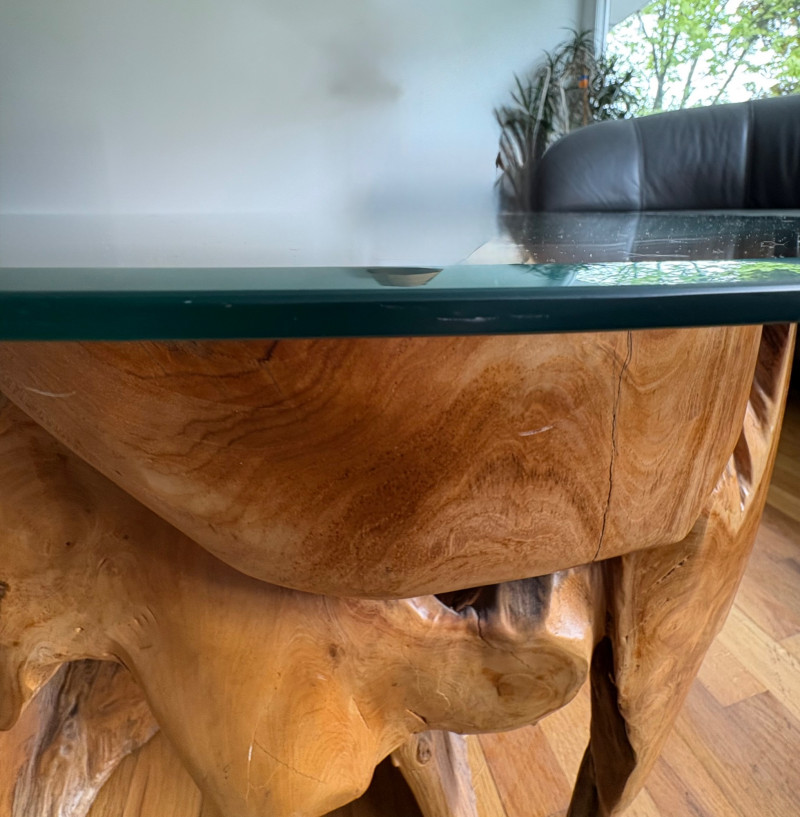 Lot # 47 - Elegant Organic Burl Wood and Glass Coffee Table