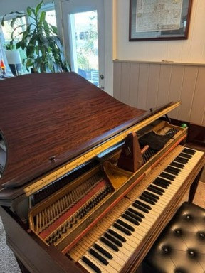 Step into piano history with this extraordinary, restored 1937 Hamilton symmetrical grand piano—a breathtaking example of Art Deco craftsmanship that represents the pinnacle of 1930s piano design innovation. This rare and highly collectible USA-made instrument features the coveted butterfly-style lid that opens from the back. What Makes This Piano Absolutely Unique: