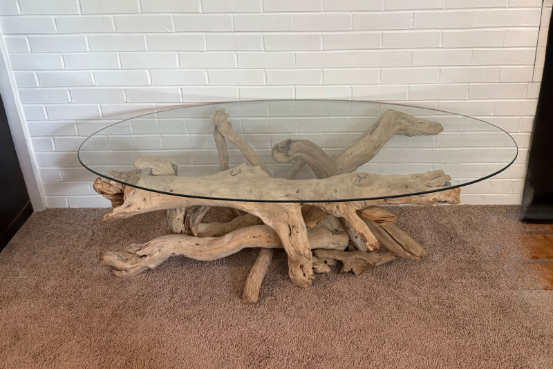 Lot # 70 - Driftwood and Glass Artsy Coffee Table