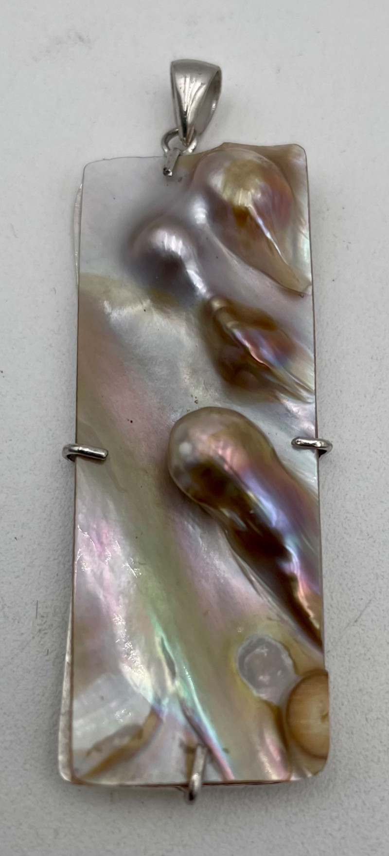 Lot # 75 - Sterling Bracelet, Mother of Pearl Pendant, & Turquoise Stones