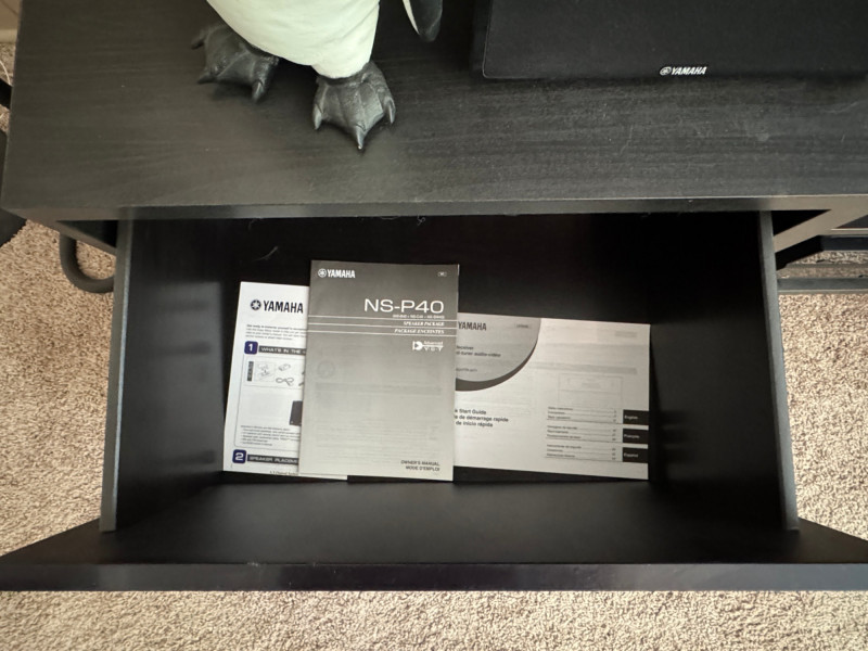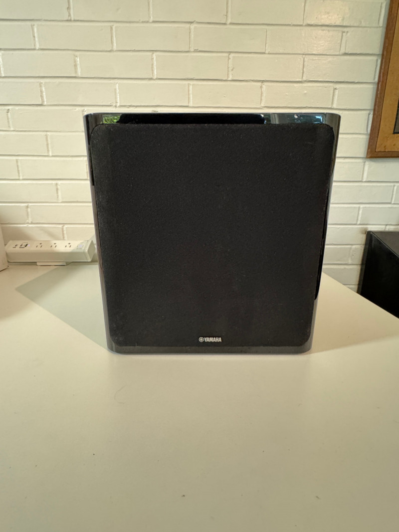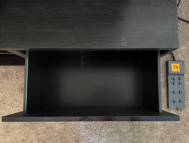 You're bidding on a complete home theater system, including electronics and furniture. This lot consists of Black entertainment cabinet with two shelves and two deep pull-out drawers. Measures just shy of 17" H x 71" W x 16 .5" D as shown. TV adds another 35.5" inches to height. In addition to the cabinet, this lot includes: Local Pickup Only. Bidding on this lot is an agreement that: (1.) You will have 2 capable, able-bodied persons to lift and load at a minimum. (2.) You will bring a hand truck and/or any other tools needed to remove this item. If these steps are not followed your item will be forfeited and no refund given.