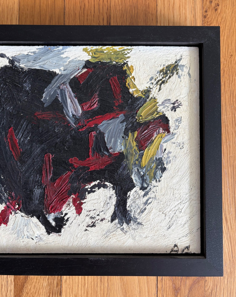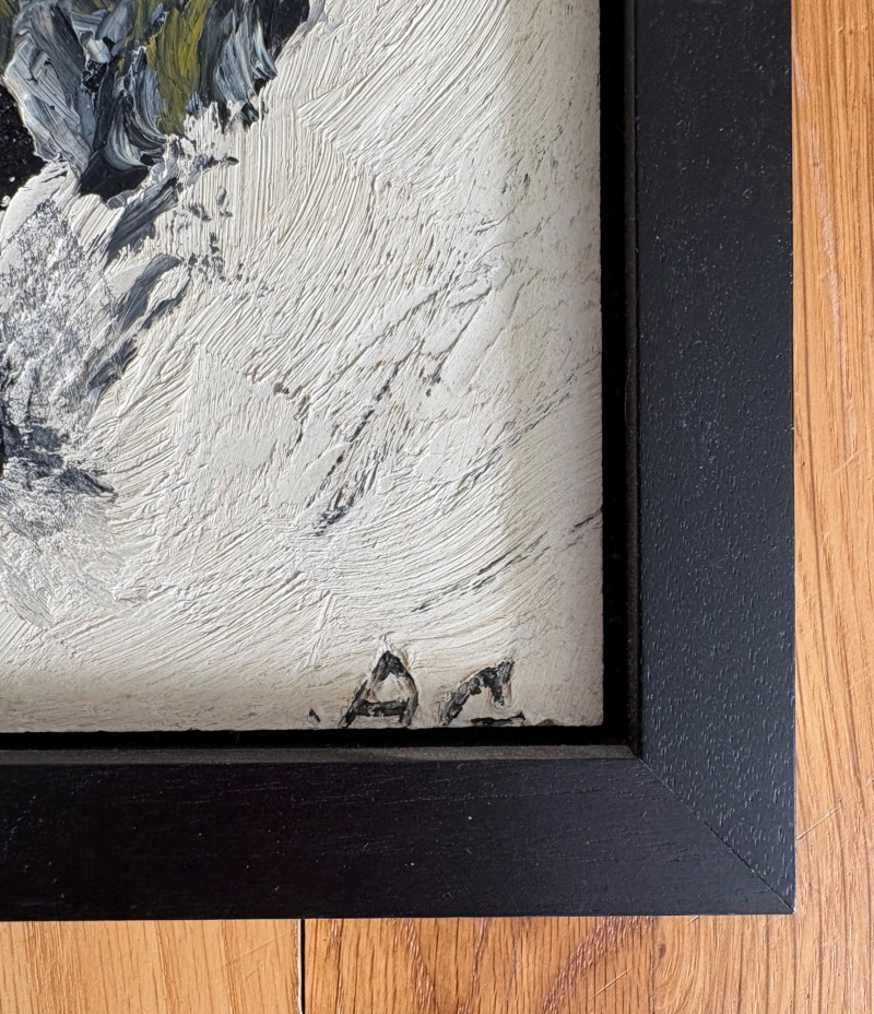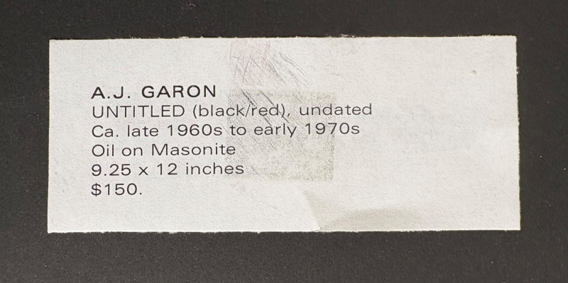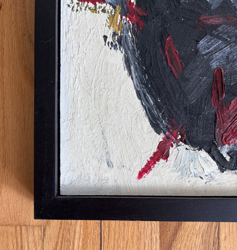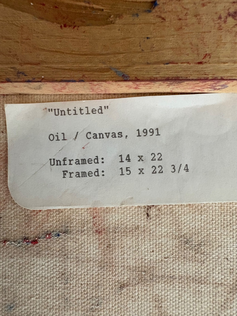 Two original paintings in oil with heavy brushstrokes. Note that the lead picture is deceptive - the Deitz is approx. twice the size of the Garon. "Untitled" oil on Masonite by AJ Garon - undated but from the late 1960s to early 1970s. Measures 10.75” H x 13.5” W framed in a great black wood frame. "Untitled" oil on canvas by James Deitz from 1991. Measures 15" H x 22.75” W in natural wood frame. Note there is some slight paint loss on the right side - see last photo. James Deitz is one of the Northwest’s