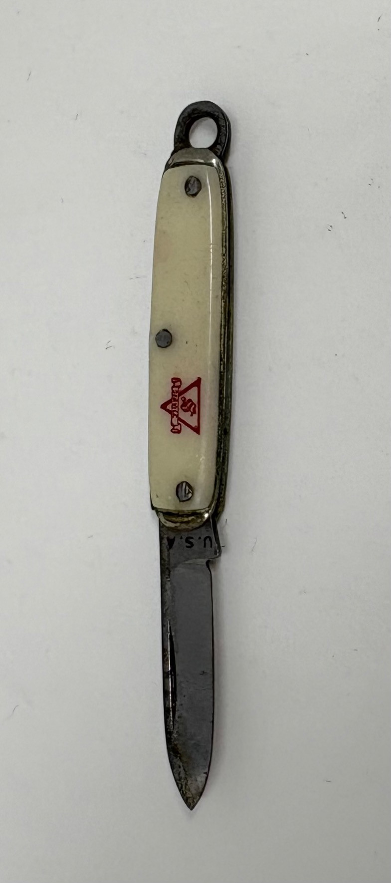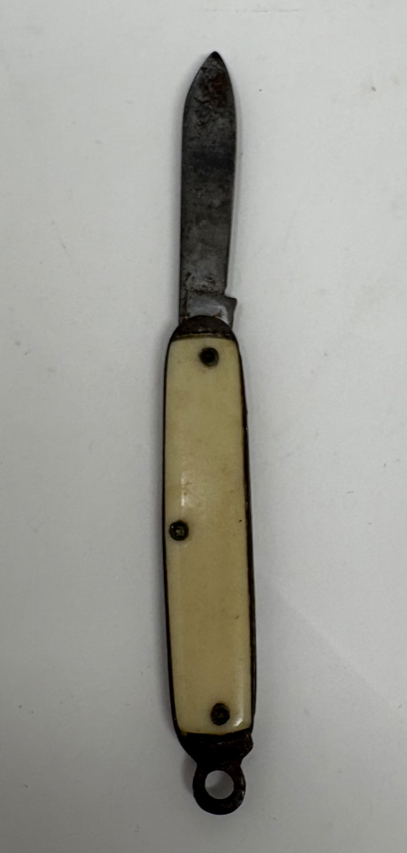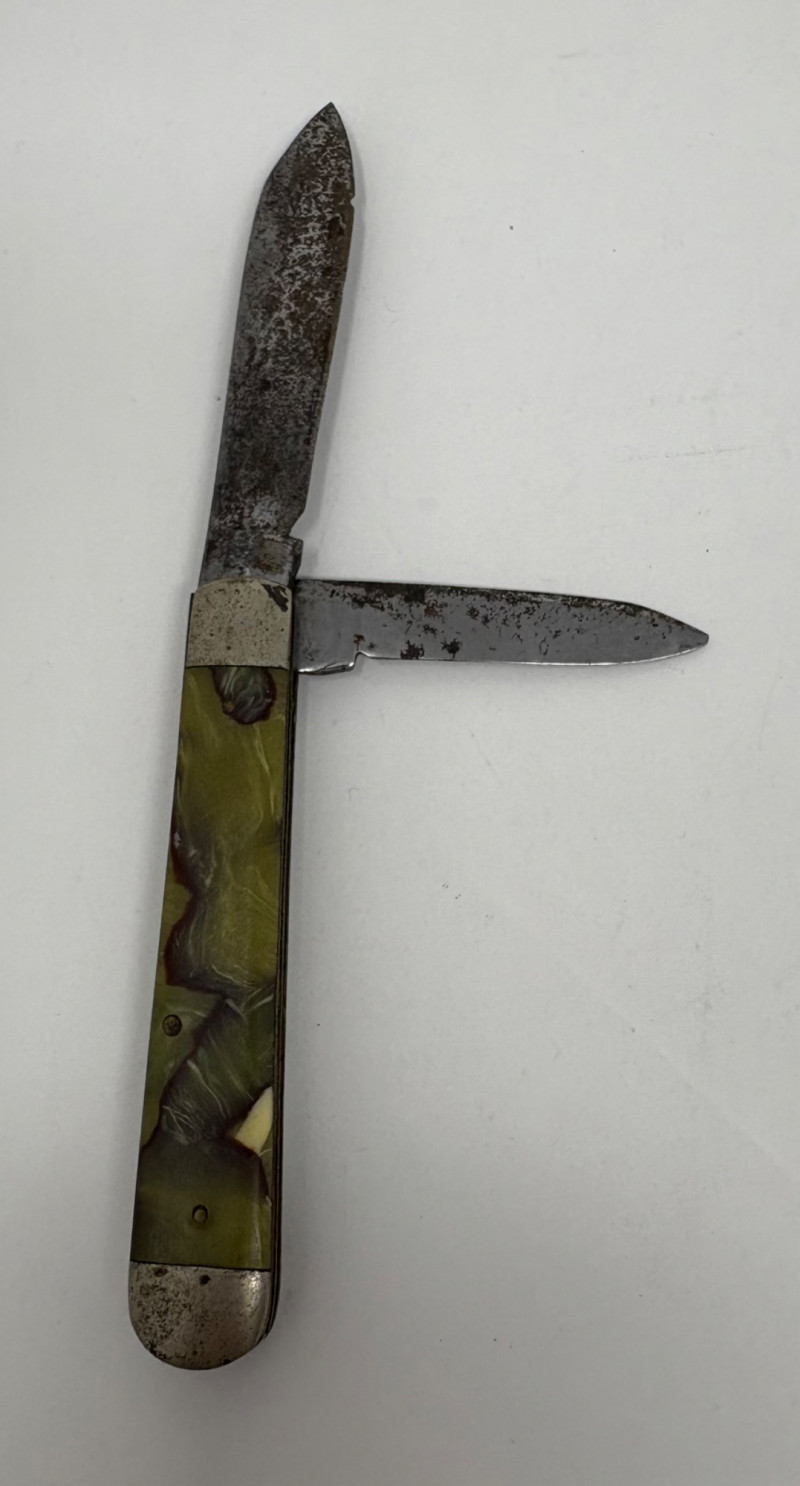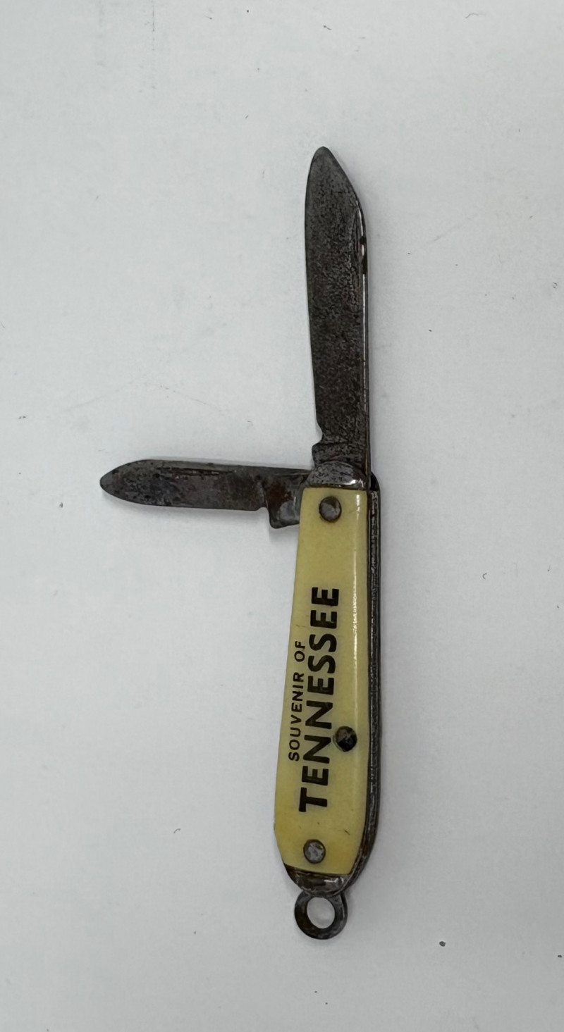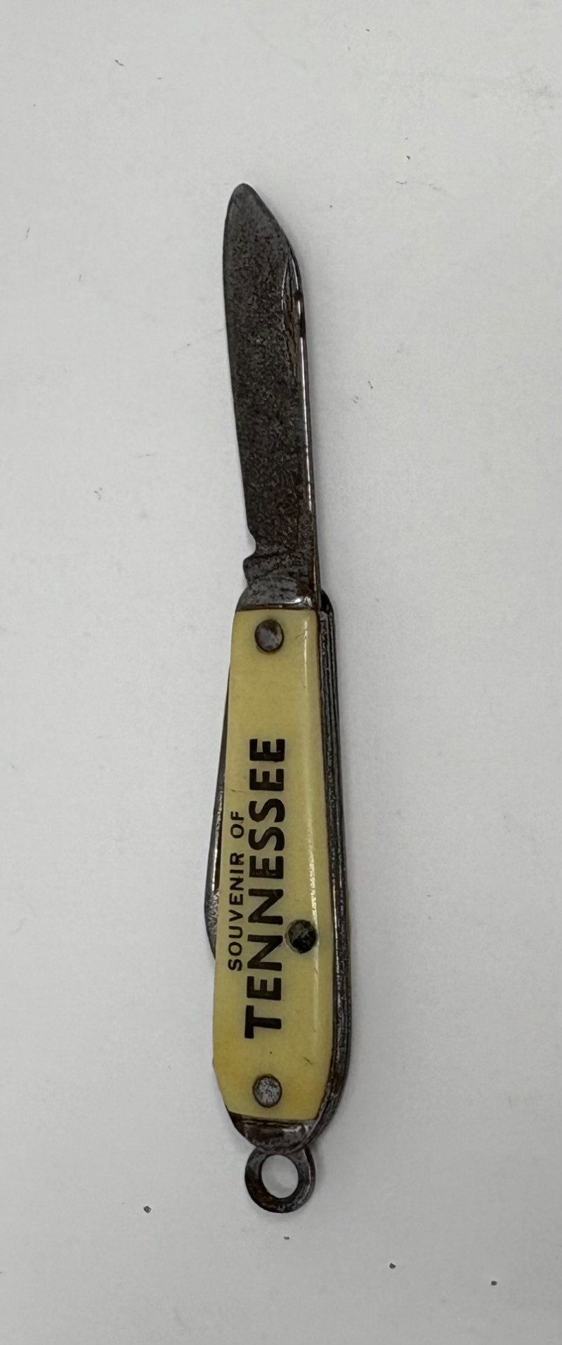Ok, so we know they don't really go together, but we gotta keep you guessing! Group of hats - homemade and commercial, includes a vintage Coogi knitted slouchy hat. 6 small vintage pocket knives from various sources in various materials from various time periods. Largest measures 3.25" closed while smallest measures just over 1.5".