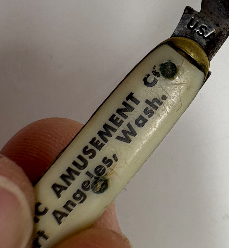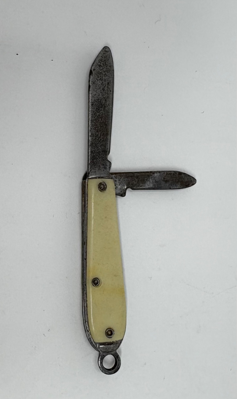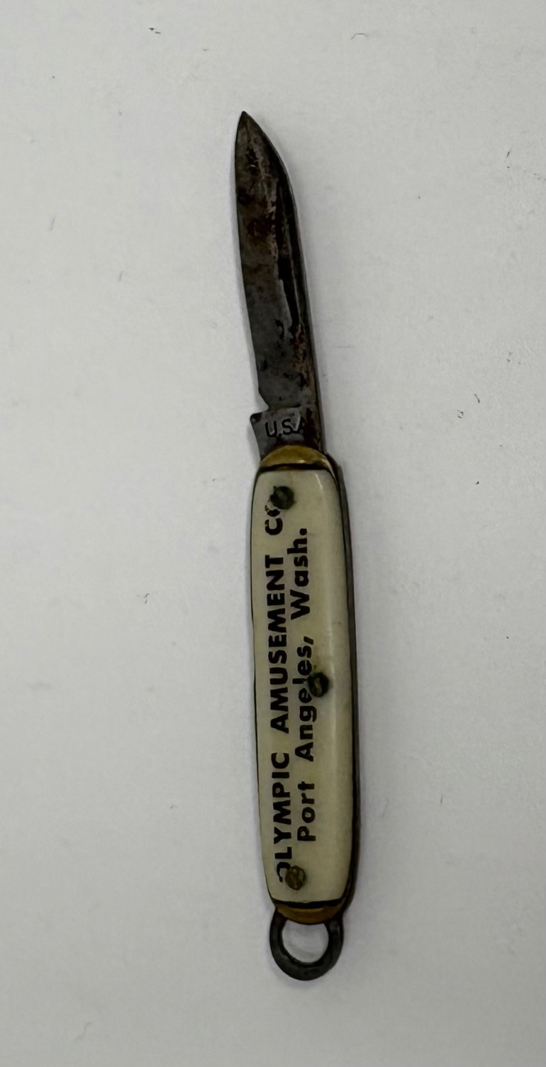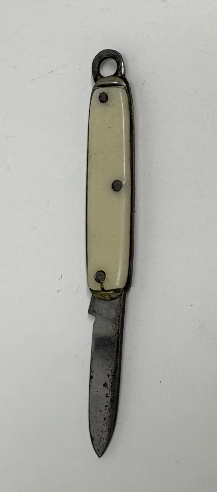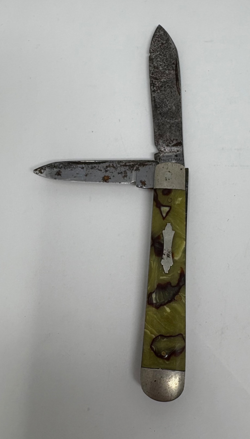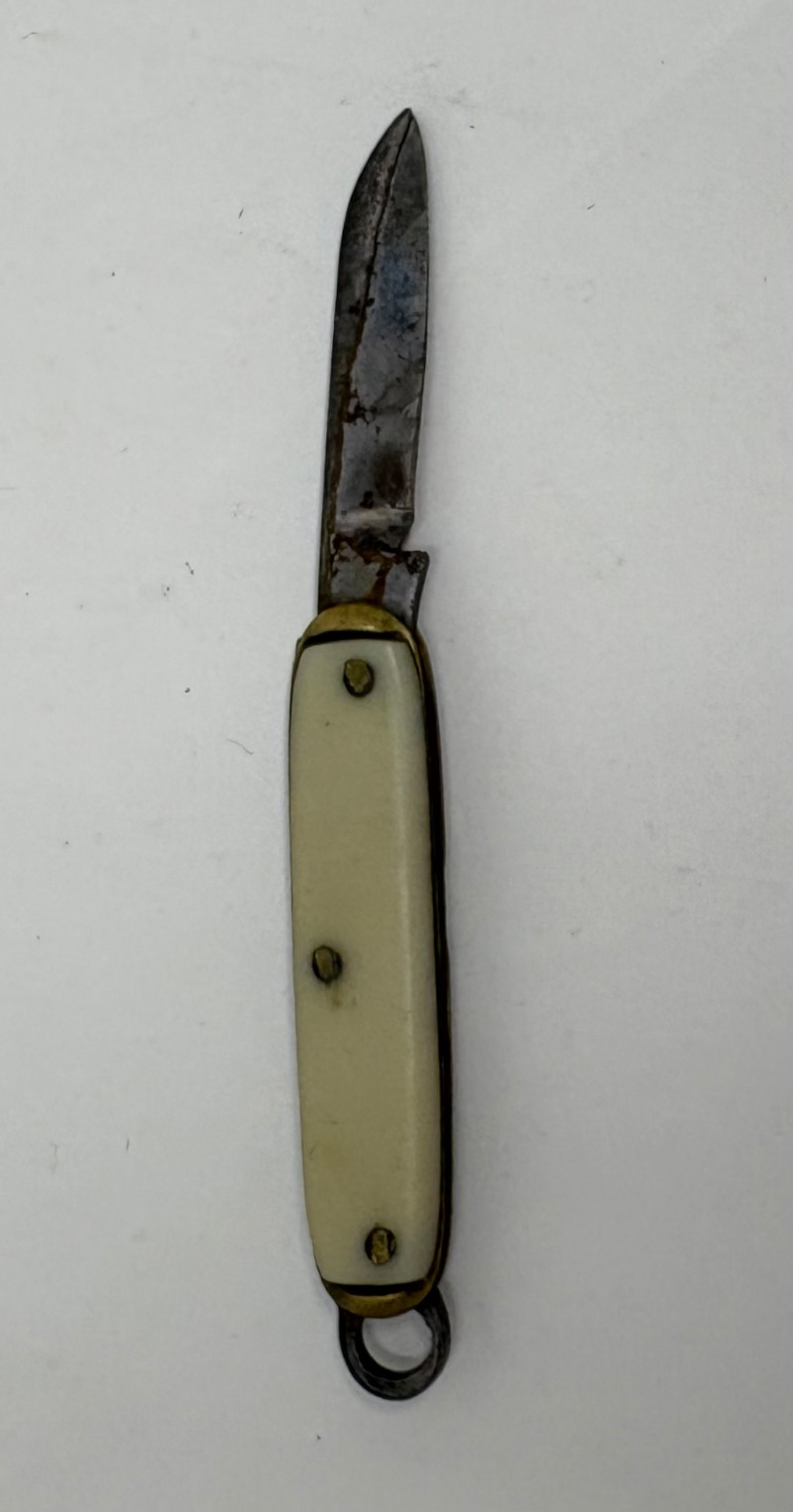 Ok, so we know they don't really go together, but we gotta keep you guessing! Group of hats - homemade and commercial, includes a vintage Coogi knitted slouchy hat. 6 small vintage pocket knives from various sources in various materials from various time periods. Largest measures 3.25" closed while smallest measures just over 1.5".