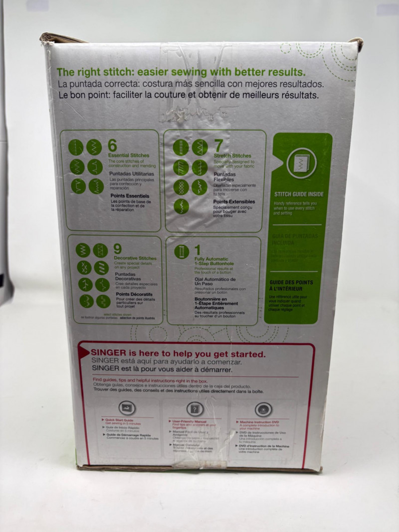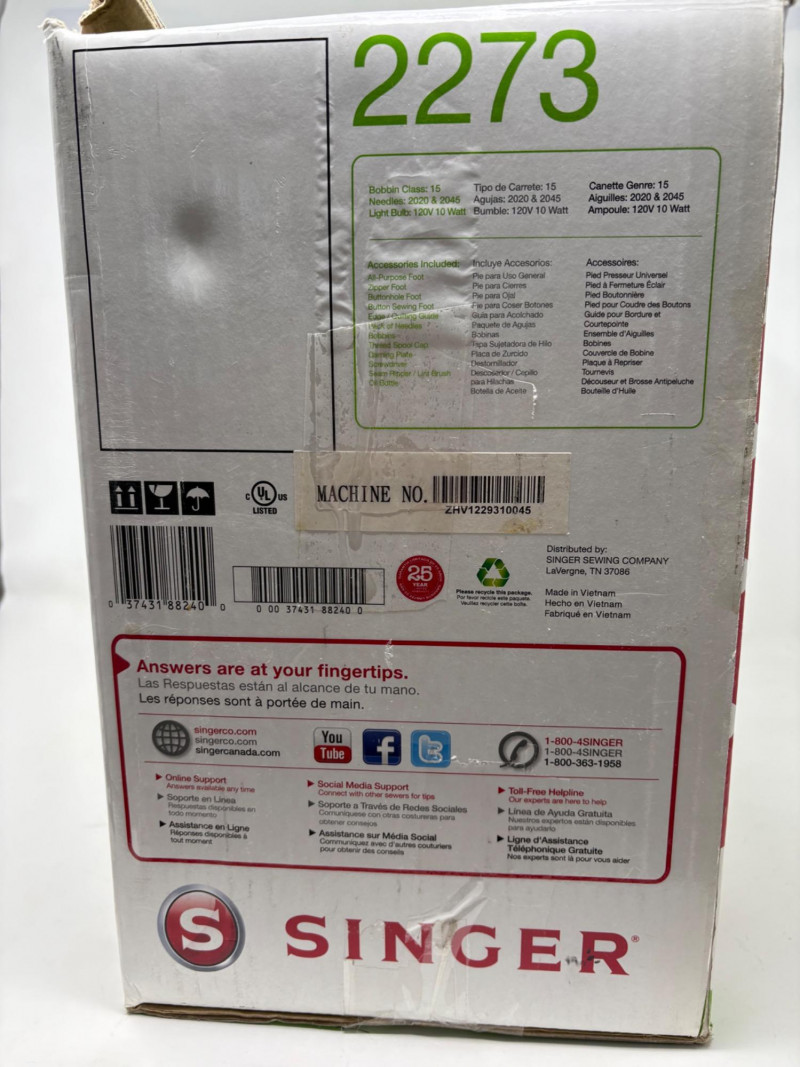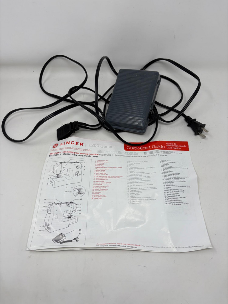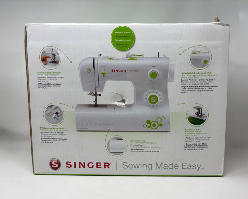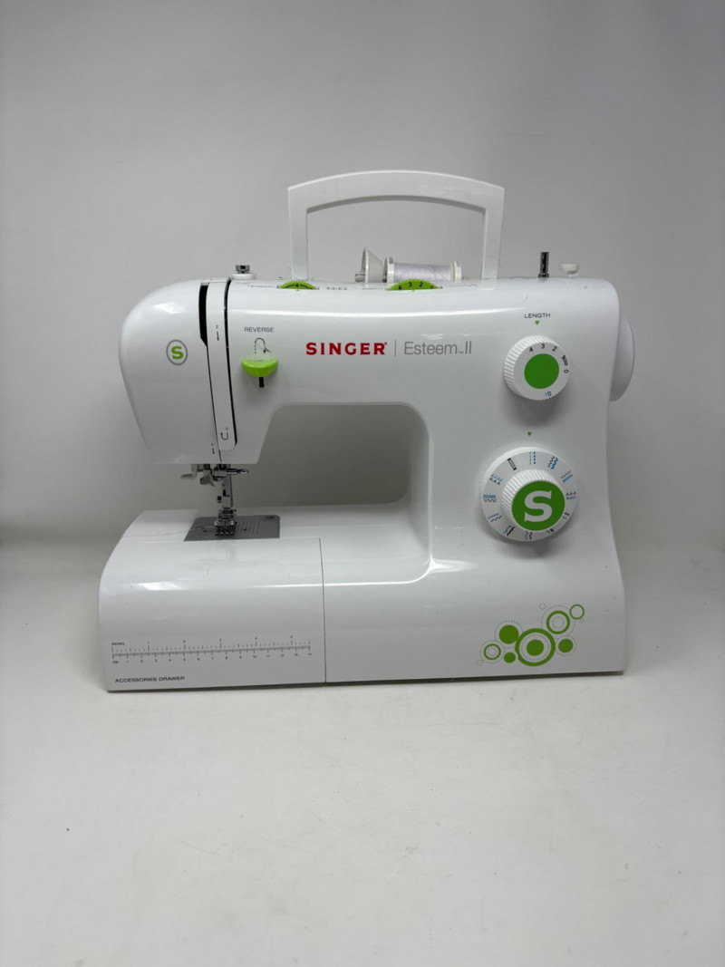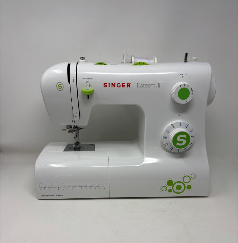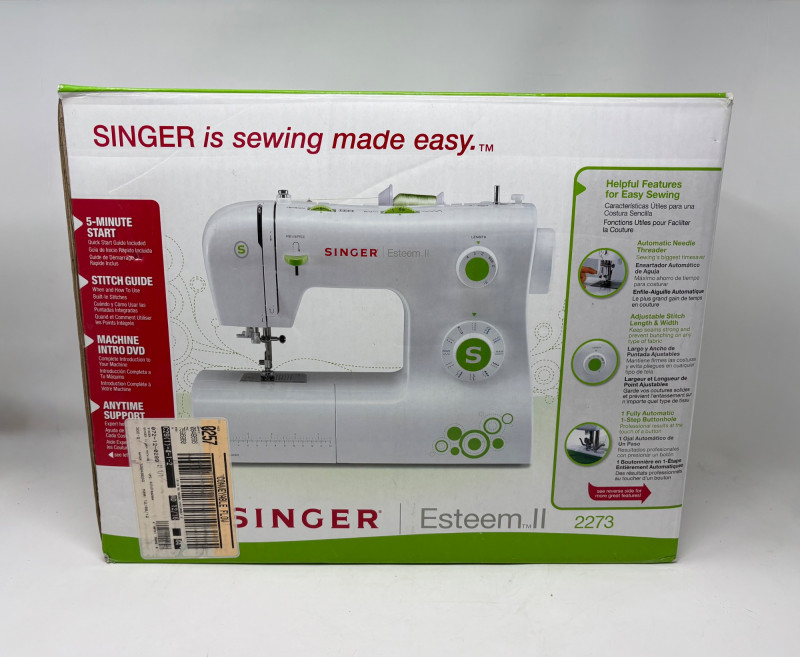 Singer Esteem II sewing machine - model #2273. Very versatile sewing machine for beginner and advanced sewist alike. If you are a beginner, simple instructions make this the perfect machine to determine if this is the hobby for you. If you are a more experienced sewist, you will find everything here you need without all the superfluous bells & whistles of higher-end machines. This model has built-in stitches and automatic button hole - pretty much all you need for garment construction if you have sewing "know how". Client states she only used the machine twice to make some repairs on her clothing.