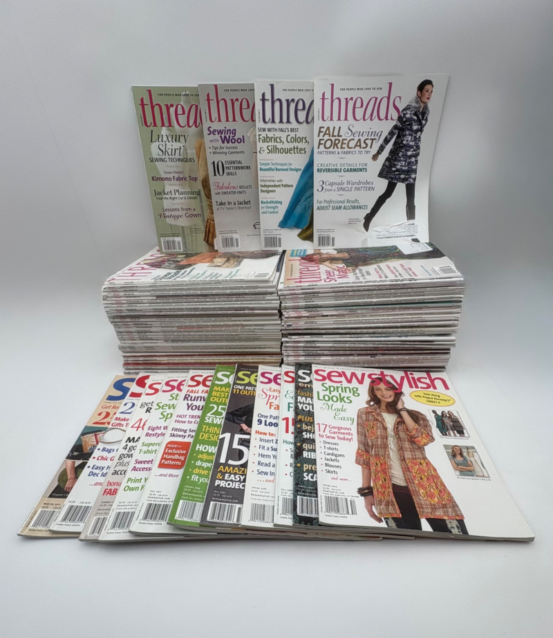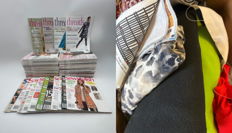 This lot includes a large number of Threads Magazine back issues (over 100) along with some issues of SewStylish. These are excellent references for "how-to" tutorials on self-facings, invisible zippers, setting sleeves, etc. There's at least a decade's worth here - from approx. 2006 to 2019 or so. See the photo. Fabric part of lot will continue to increase - it's going to be whatever else we find in the sewing room as we clean it out. So far there's some polar fleece and lining fabrics. More will be added as we find it.