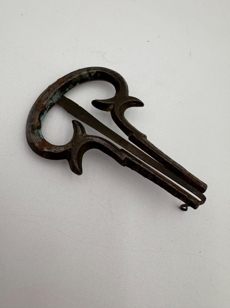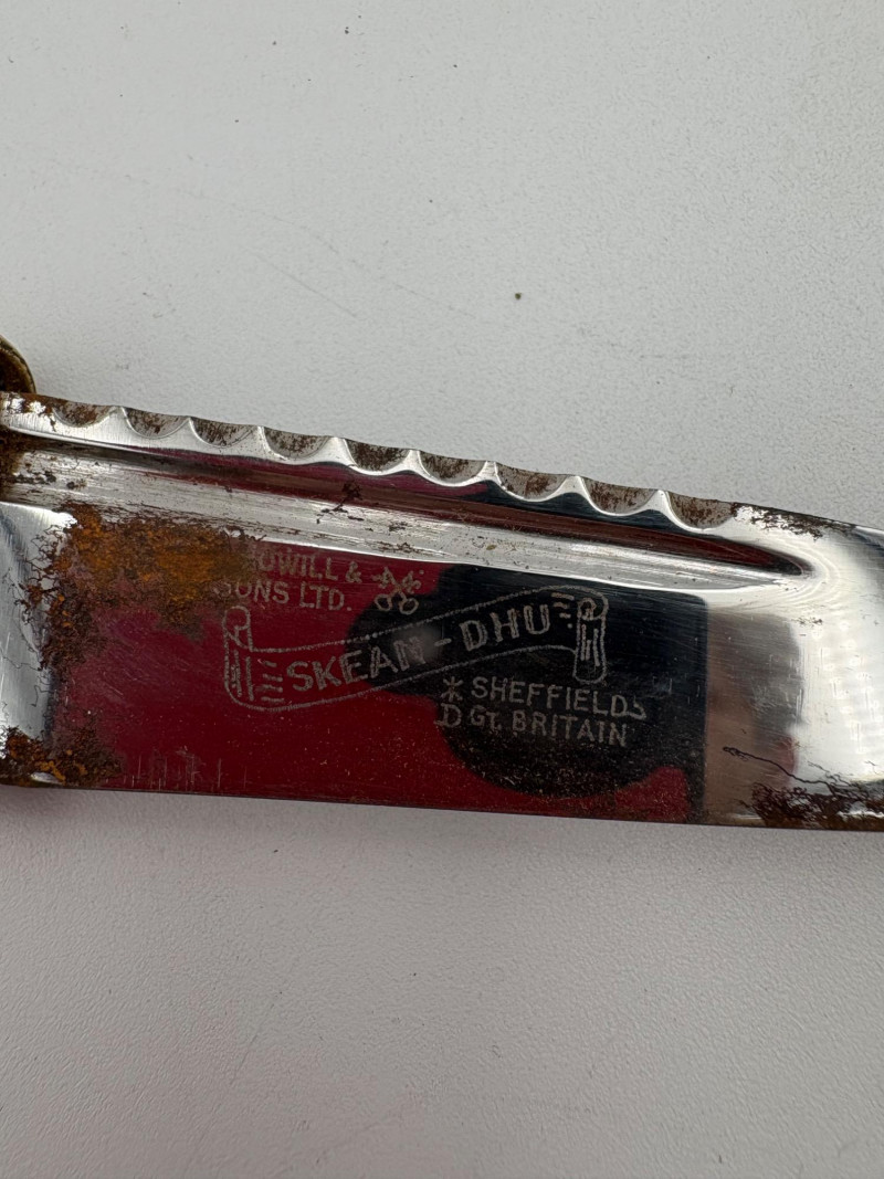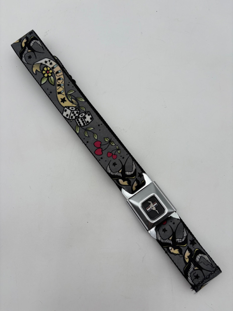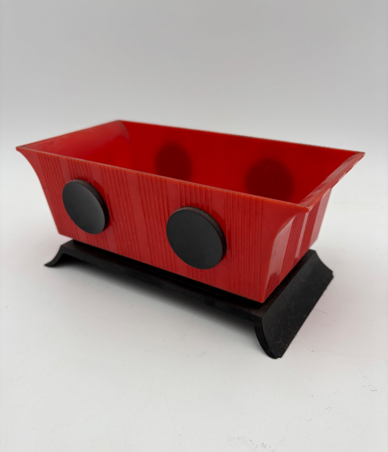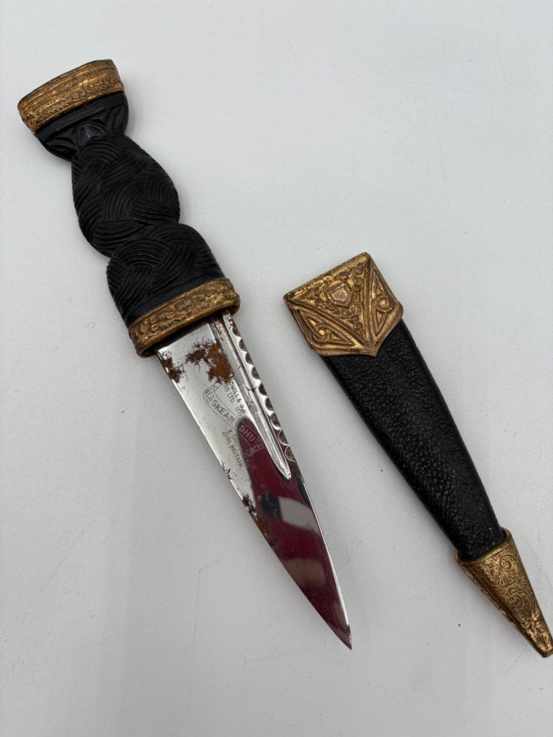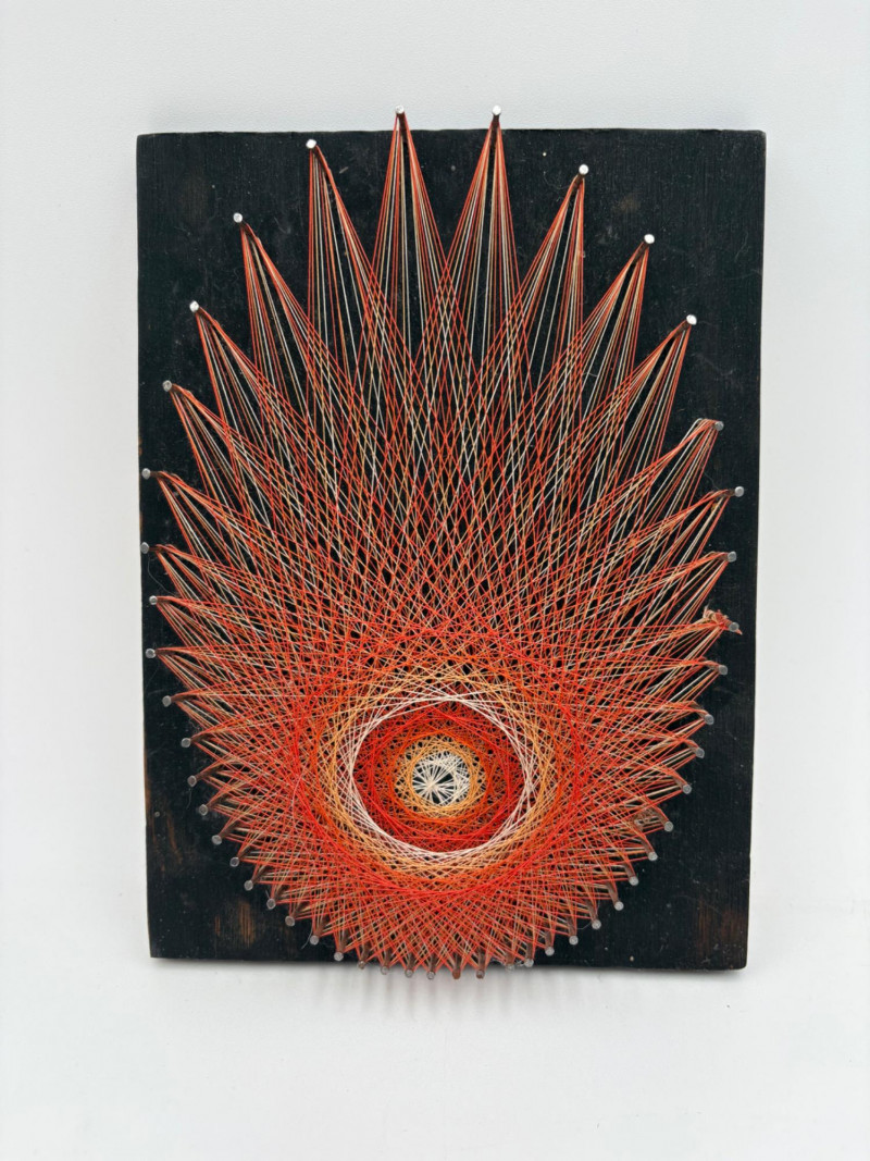 Mixed oddities that don’t have a relationship, but are sort of cool. Most are vintage. 10 metal license plates from the 70s and 80s We believe these are for bicycles - most measure around 3" H. "Happiness is a Warm Puppy" classic Peanuts book from Charles Schulz. 1962, Cider Mill Press. Blue bottle with the phrase "Dreams – Drink Deeply and Believe“. Measures approximately 12" H with lots of small scratches; looks like the dreams got a bit battered. Modern Mexican Dos Muertos (Day of the Dead) dog holding a Dos Equis beer bottle. Measures 3" H. Vintage mouth harp - measures approx. 3" L. USA-made uni-sex fashion belt. Made from seatbelt webbing with tattoo print and Ford Mustang buckle closure. Adjustable from very small to very large. If you can click your airline seatbelt, you can operate this belt. Vintage ceramic “Confucius say” trinket tray. From Bradley Exclusives Japan - measures 3.75" square. Vintage Moxie soda can with the original pop top still intact. Measures just under 5" H. Small bird sculpture made from horn - measures approximately 5.5" H and very delicate. Missing his left eye, which isn’t noticeable if you turn him to the right! 2 antique vintage bookends that client’s grandfather obtained many years ago - they are hand-painted (slight variations) and measure 5" H x 4.5" W. Client's grandfather told her they were given to him by an associate of the Navajo Nation. Vintage heavy glass paperweight of a WW2 tank. Measures approx. 4" L. Black & red vintage Bakelite planter from client's grandmother. No maker mark, but in great condition - measures 4" H x 8" L x 4" D. Small black knife with scabbard. Belonged to client’s father during World War II. Measures approximately 8" L. Made in Great Britain. "Wizard of Id" classic comic book from Brant Parker & Johnny Hart. 1974, Fawcett Gold Medal Books. 1970s string art from client's sister when in 3rd grade. Measures 8" H x 6" W. Old metal star chart of some kind. Printed on both sides. We are not sure what it was part of, but it's definitely vintage. Measures approximately 10" square.