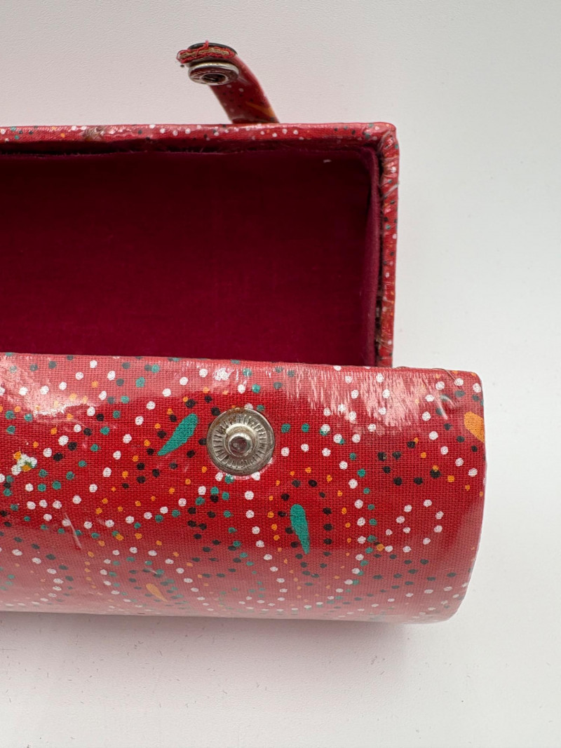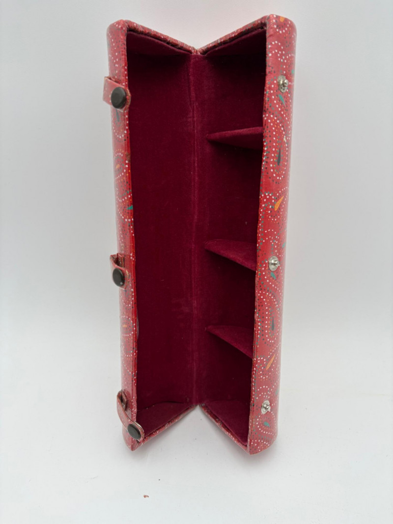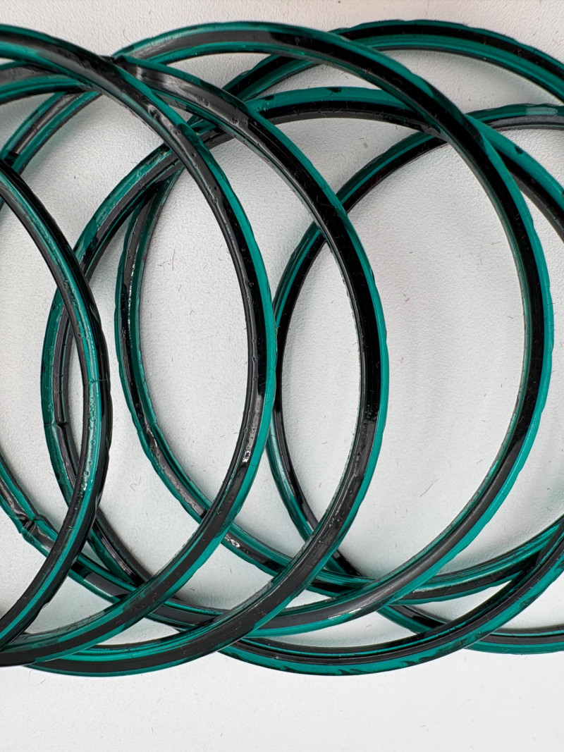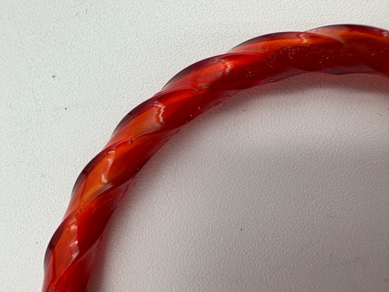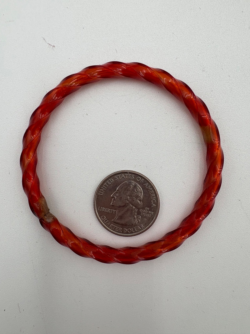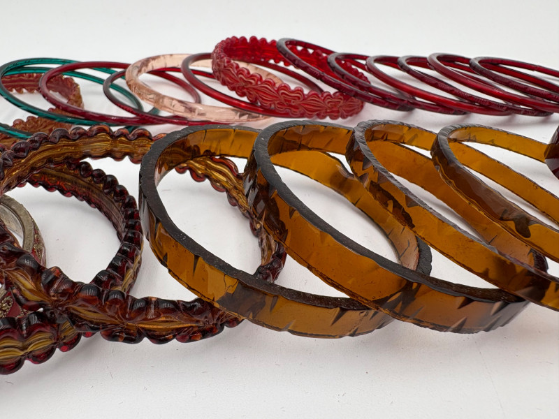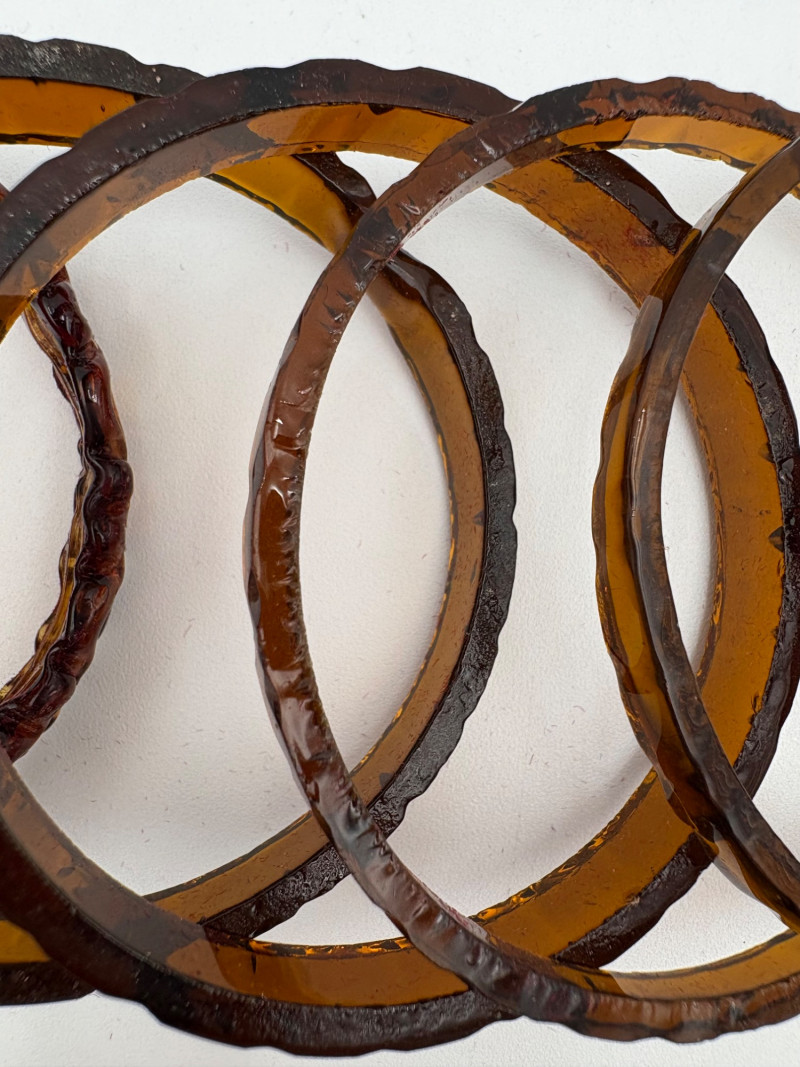 Delicate vintage glass bracelets from India. Client purchased them over 30 years ago while there. Please note that these are quite delicate and on the smaller side - all are the same size and slip over the hand. Comes with a red protective velvet case.
