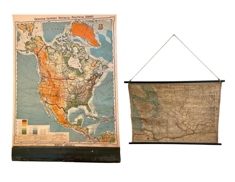 Lot # 189 - Antique North America and Washington State Classroom Maps