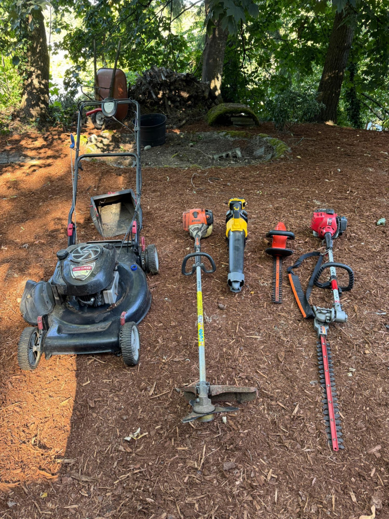 Group of 5 lawncare tools. lot includes: ABOUT THE LAWNMOWER Experience the difference with the Craftsman 917.374352, a self-propelled, walk-behind lawn mower engineered for homeowners who demand reliability and performance. Designed with a robust 22-inch cutting width and powered by a dependable Briggs & Stratton 4-cycle engine, this mower delivers a clean, even cut every time—making yard work faster and easier. 22-inch steel blade provides efficient mowing, while the 3-in-1 design allows for mulching, side discharge or rear-bagging. This is a self-propelled front-wheel-drive mower with variable speed control and rear-wheel traction assist. ABOUT THE TROY-BILT GAS-POWERED HEDGE TRIMMER Transform your yard work with the Troy-Bilt TB80EC, a robust 27cc gas-powered hedge trimmer designed for homeowners who demand both performance and convenience. 17" cutting swath. Engineered with a full-crank 2-cycle engine, this trimmer delivers reliable power and extended engine life, making it ideal for tackling thick hedges, overgrown shrubs, and hard-to-reach branches. This is a full-crank 2-cycle engine with spring-assisted starter rope. Weight: 15lbs. ABOUT THE BLACK & DECKER ELECTRIC HEDGE TRIMMER Take your yard care to the next level with the Black & Decker HT2000, a 20-inch, 120V electric hedge trimmer designed for homeowners who value both power and ease of use. Engineered for clean, precise cuts and user comfort, the HT2000 makes shaping hedges, shrubs, and bushes a breeze. ABOUT THE STIHL GAS-POWERED YARD TRIMMER Elevate your yard care with the Stihl FS 90 R, a professional-grade lawn trimmer engineered for those who demand reliability, power, and flexibility. Designed with Stihl’s innovative 4-MIX® engine technology, this trimmer delivers the torque and efficiency of a four-stroke with the simplicity of a two-stroke—making it the go-to choice for landscaping professionals and discerning homeowners alike. Features: two-stroke engine, 16.5" cutting swath (string) and 8" cutting swath (brush blade). Comes with 3 string spools. ABOUT THE DEWALT BATTERY-POWERED LEAF BLOWER Experience the next level of cordless convenience with the DeWalt DCBL722, a 20V MAX XR brushless handheld leaf blower engineered for homeowners and professionals who demand both performance and comfort. Designed with an innovative axial fan and a high-efficiency brushless motor, the DCBL722 delivers impressive power while remaining lightweight and easy to maneuver. Features: 450 cubic feet per minute of air, 125mph. Brushless motor. 62-66 decibels. Weight: 5.43 lbs without battery. Comes with 1x 5A battery pack and 1x 9A battery pack, and 2 chargers to charge both batteries simultaneously. Local pickup only for all items in this lot - WE CANNOT SHIP GAS-POWERED ITEMS..