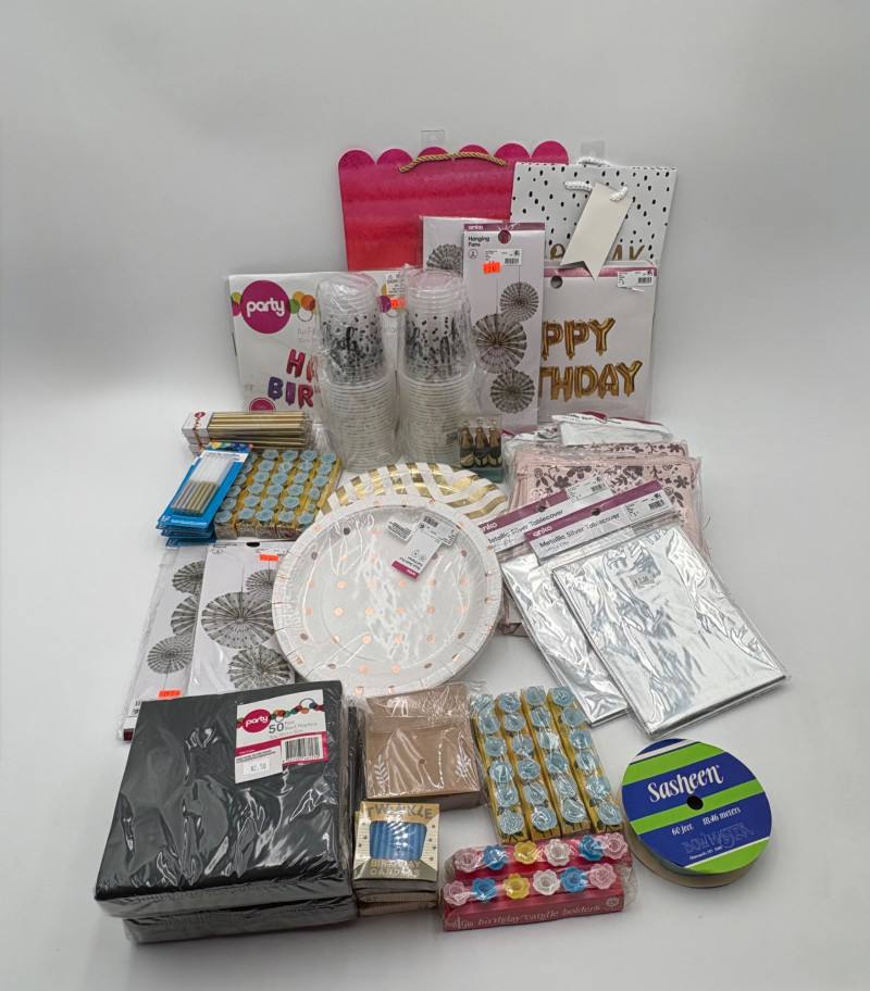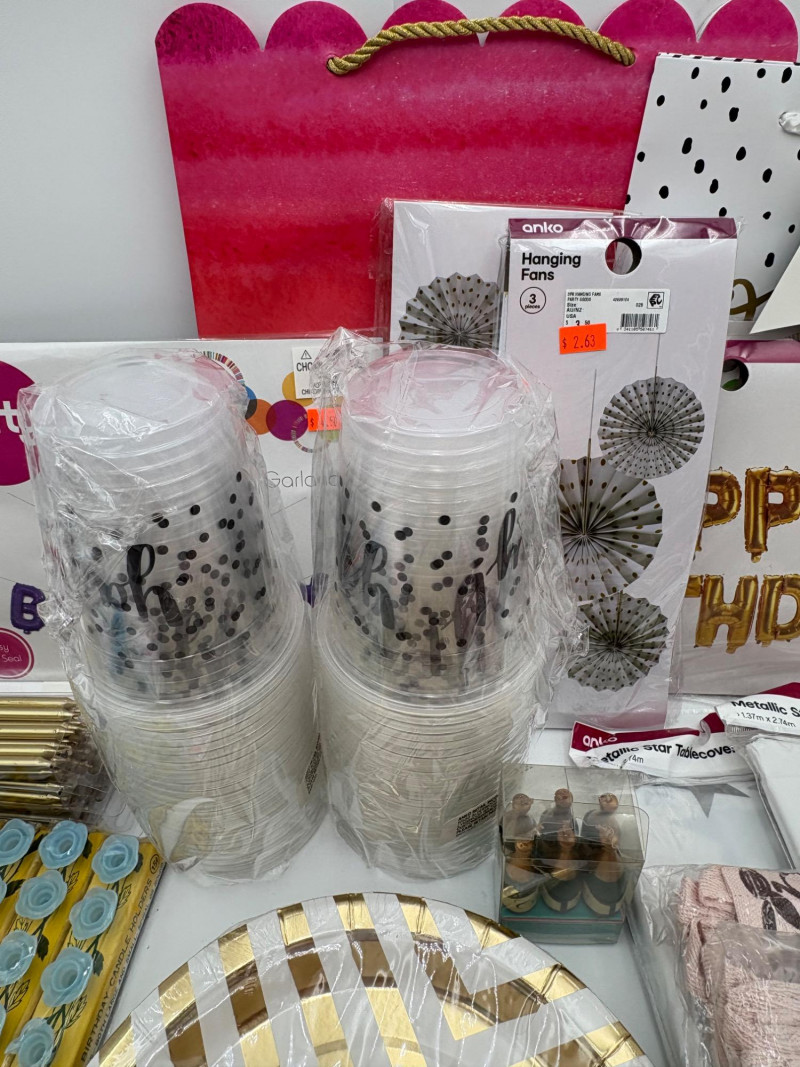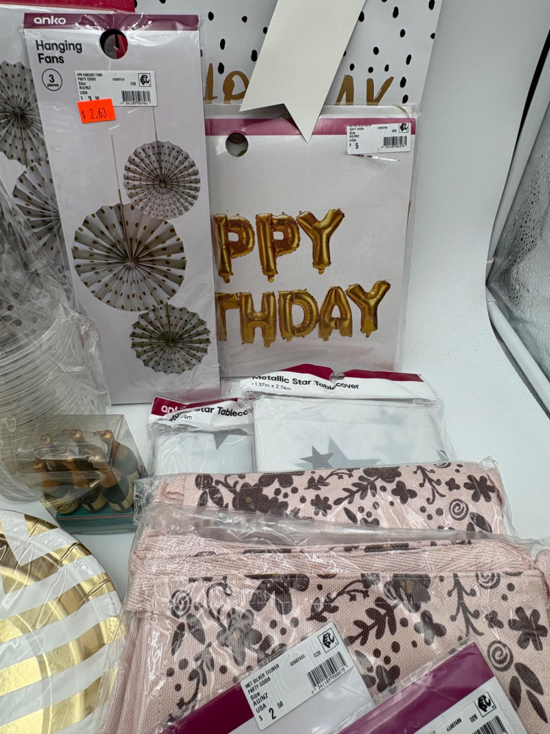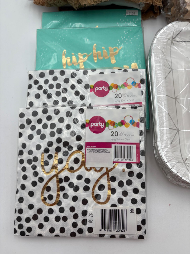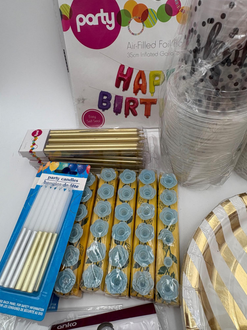 Lot # 198 - Giant Lot of Party Supplies - Plates, Decorations, Napkins, Banners +