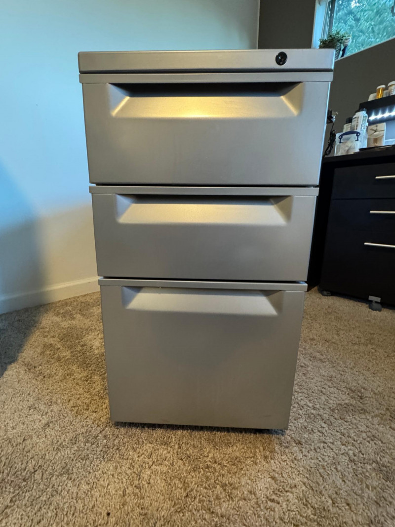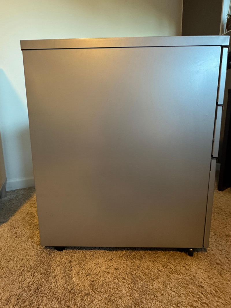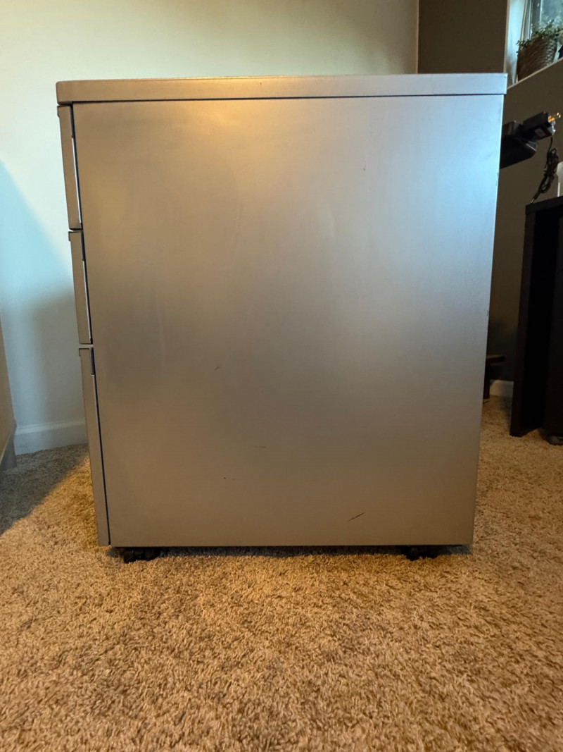 2 pieces of office furniture: The office cabinet is great for holding books and magazines. Use the wheeled pedestal for pens, papers, and your most important files. No key included. Local Pickup Only. Bidding on this lot is an agreement that: (1.) You will have 2 capable, able-bodied persons to lift and load at a minimum. (2.) You will bring a hand truck and/or any other tools needed to remove this item. If these steps are not followed your item will be forfeited and no refund given.