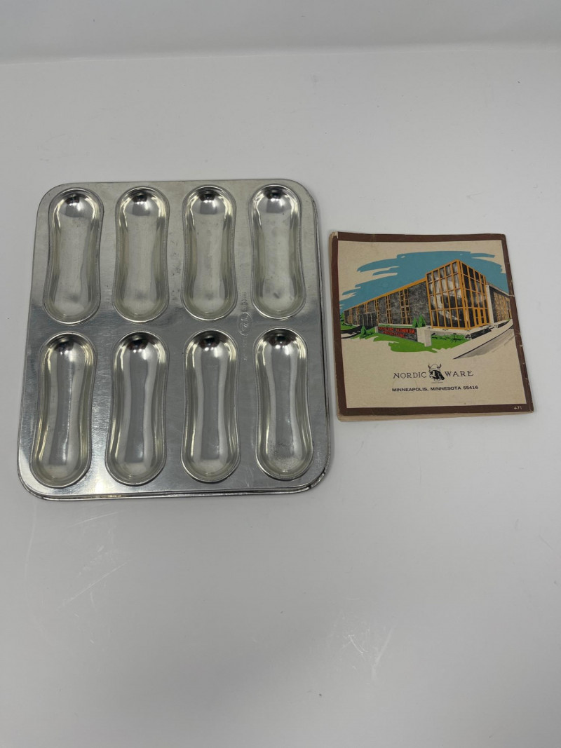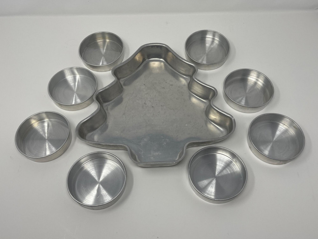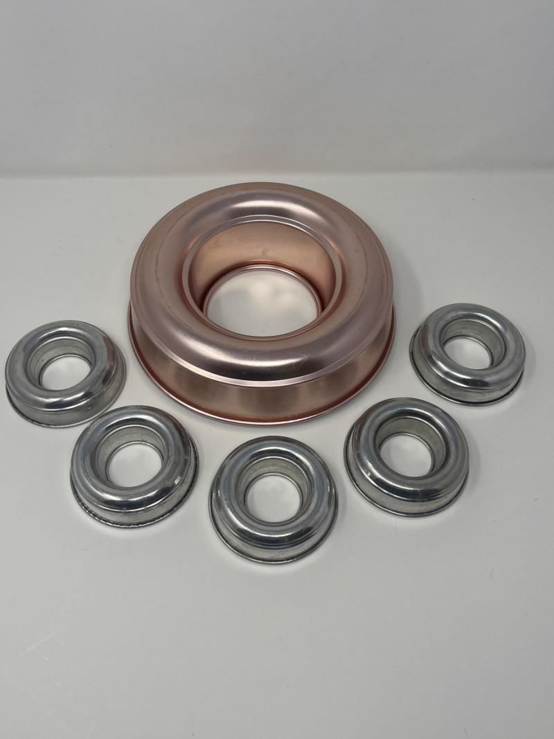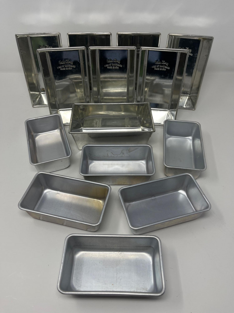 Vintage Bakeware Collection – Molds, Mixing Bowl, and More This vintage bakeware set includes a variety of aluminum molds, a ceramic mixing bowl, a glass loaf dish, and retro recipe booklets. Set includes:
