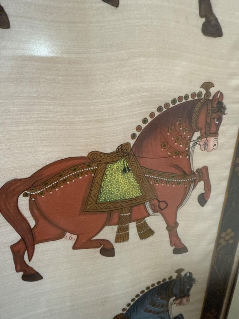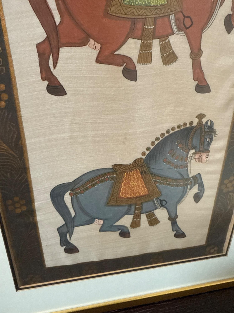 Lot # 14 - Framed Indian Cloth Painting of Decorated Horses