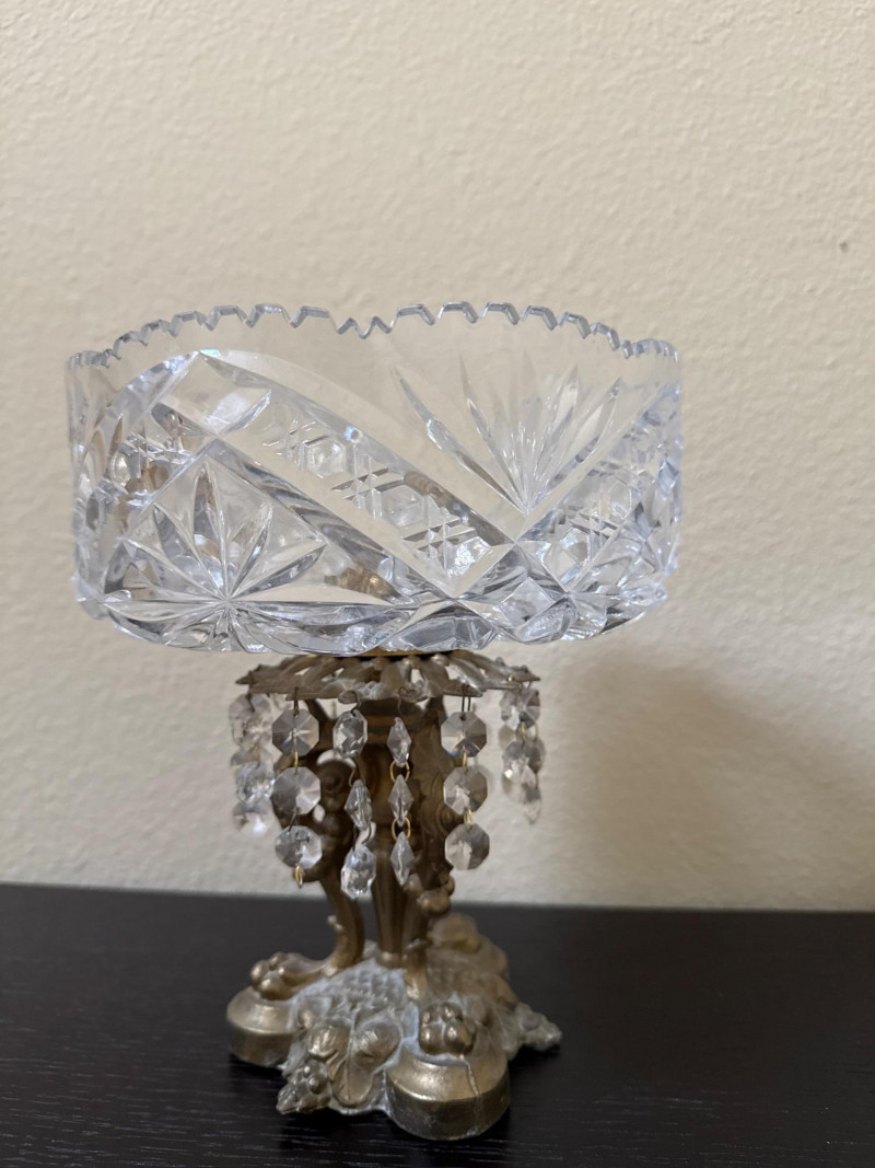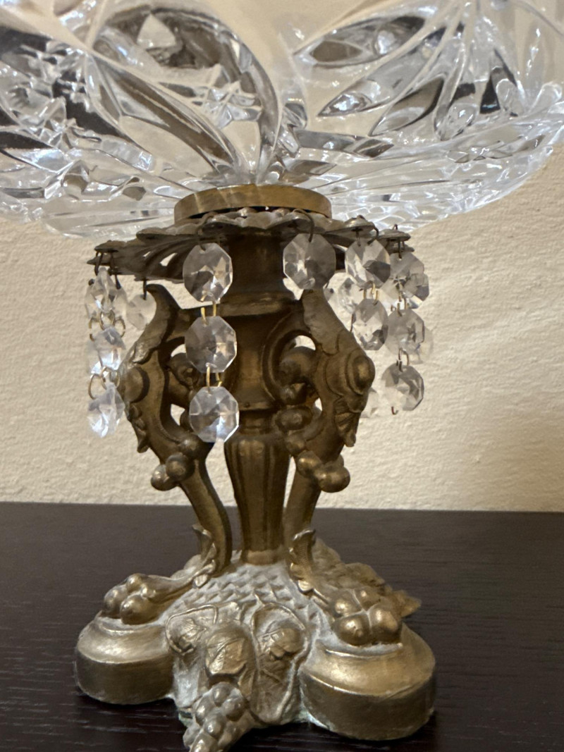 Lot # 16 - Hollywood Regency Crystal Compote with Ornate Brass Base