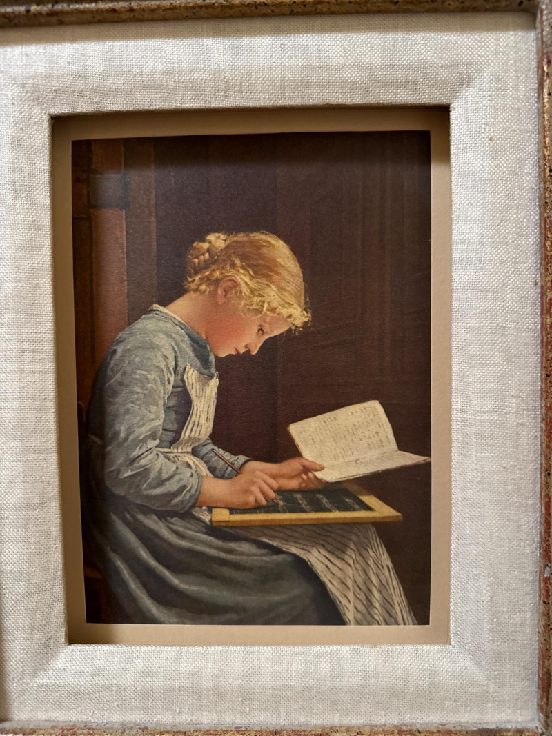 Lot # 20 - Pair of Framed Vintage-Style Prints – Boy with Books & Girl Studying
