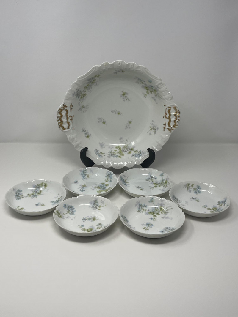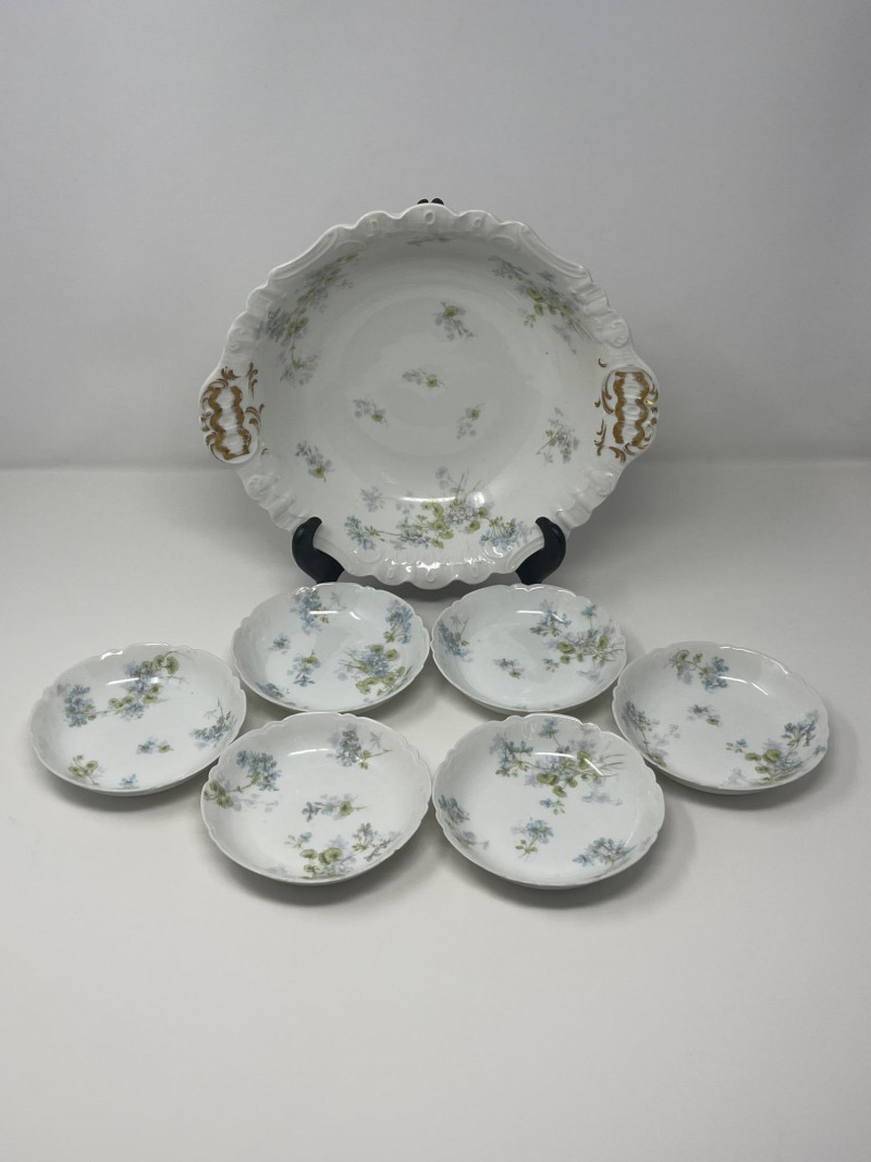 Lot # 23 - J. Pouyat Limoges Blue Floral Serving and Bowl Set – France