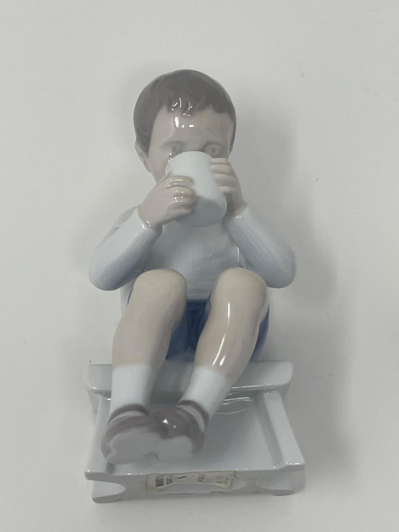 Lot # 43 - Bing & Grondahl Victor Boy Drinking Milk & Reading Children Figurines