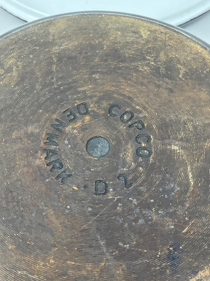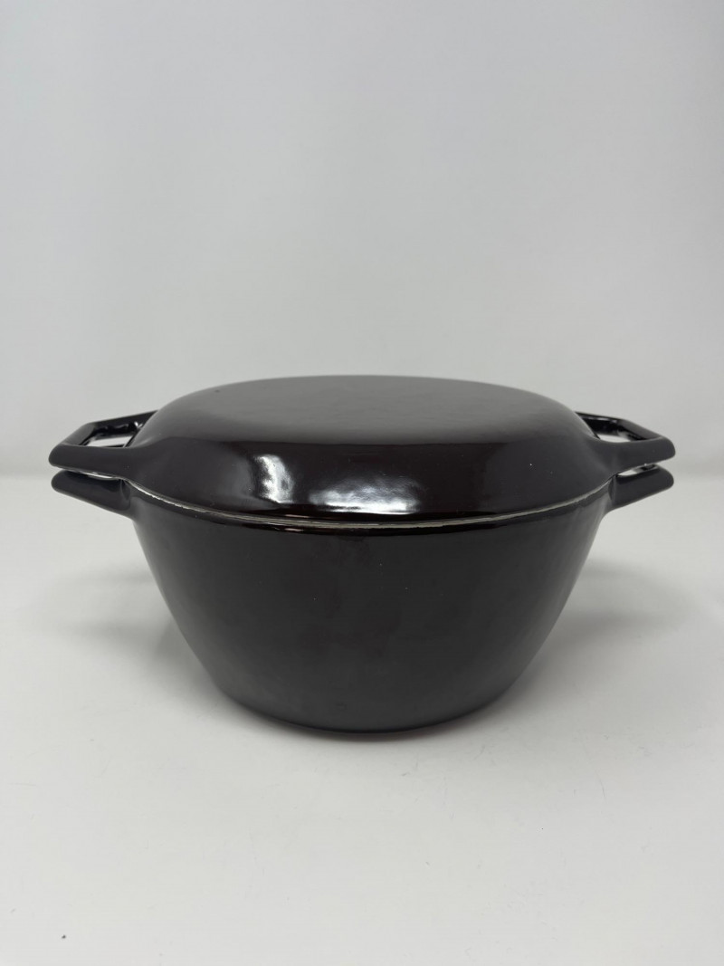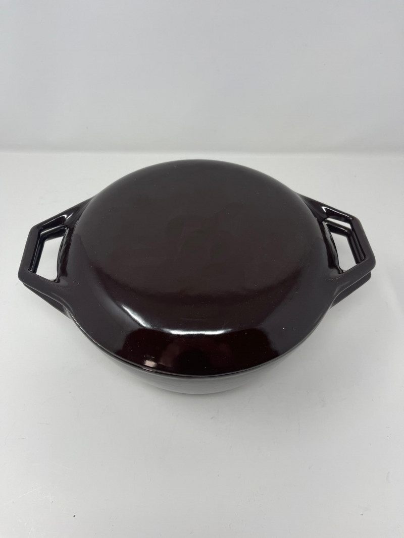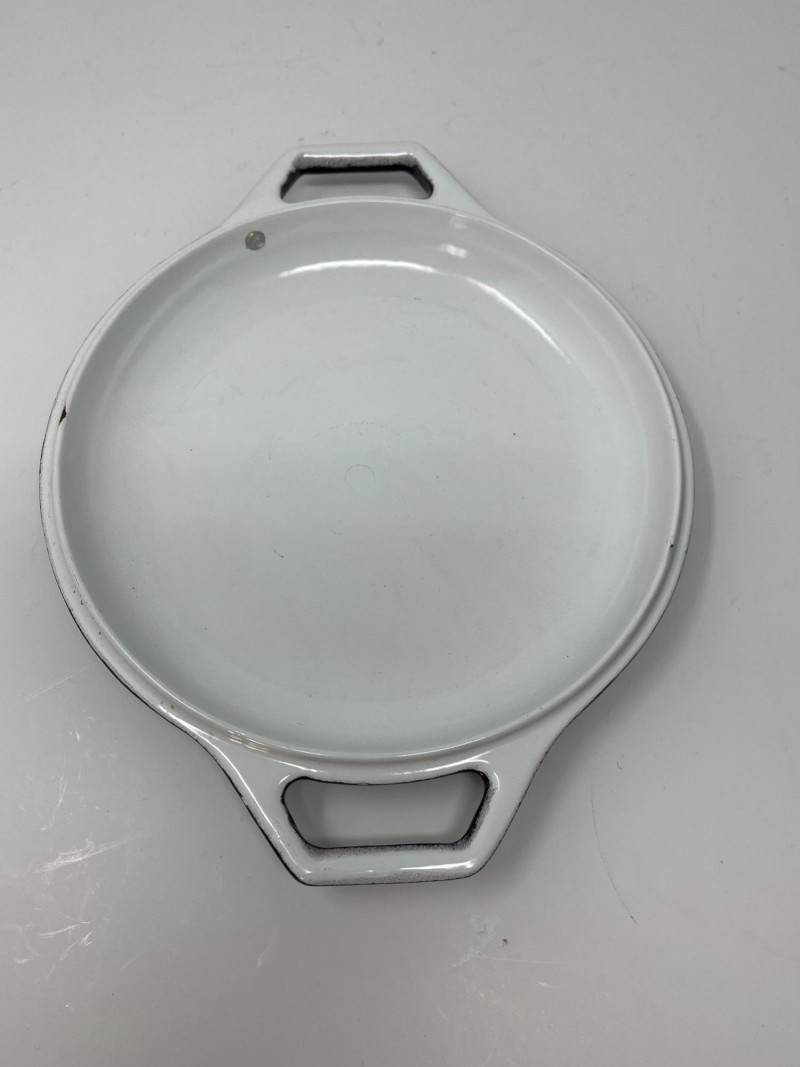 Vintage Copco Cast Iron Dutch Oven Cast iron Dutch oven with enamel coating, designed by Copco of Denmark. Features a white enameled interior and side handles for lifting. Marked "Copco Denmark D2" on the base. Dimensions: 10 1/4" across (handle to handle), 5" tall (including lid)
