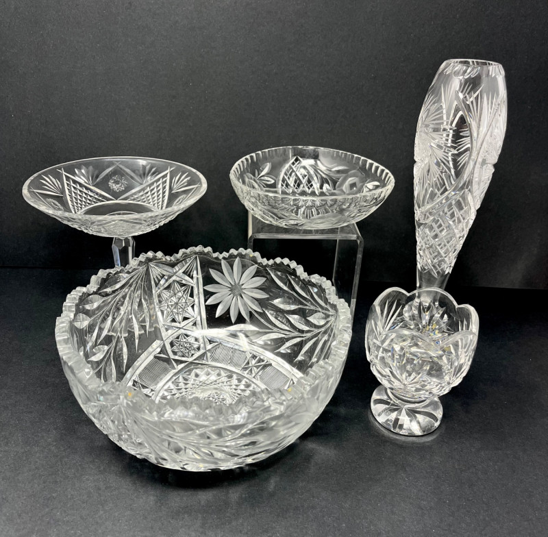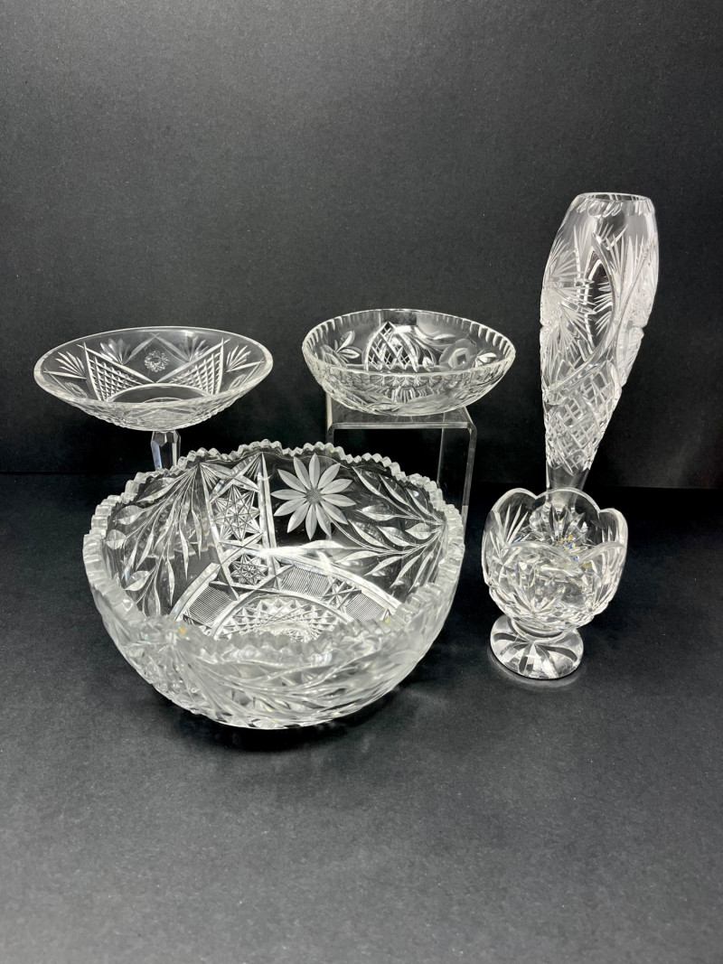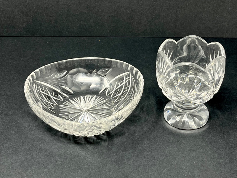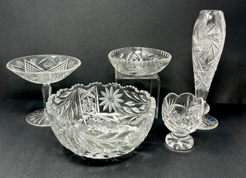 Brilliant Cut Crystal Bowls, Vases, and Waterford Compote