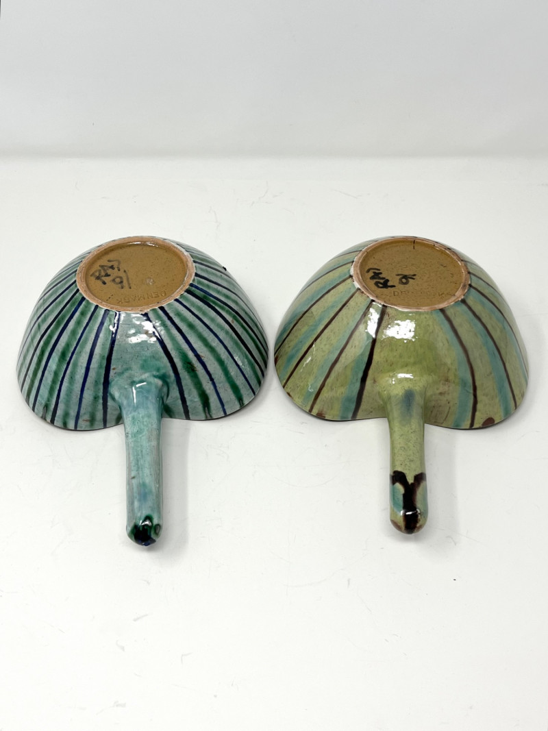 Lot # 119 - Pair of Danish Hand-Painted Stoneware Bowls with Handles